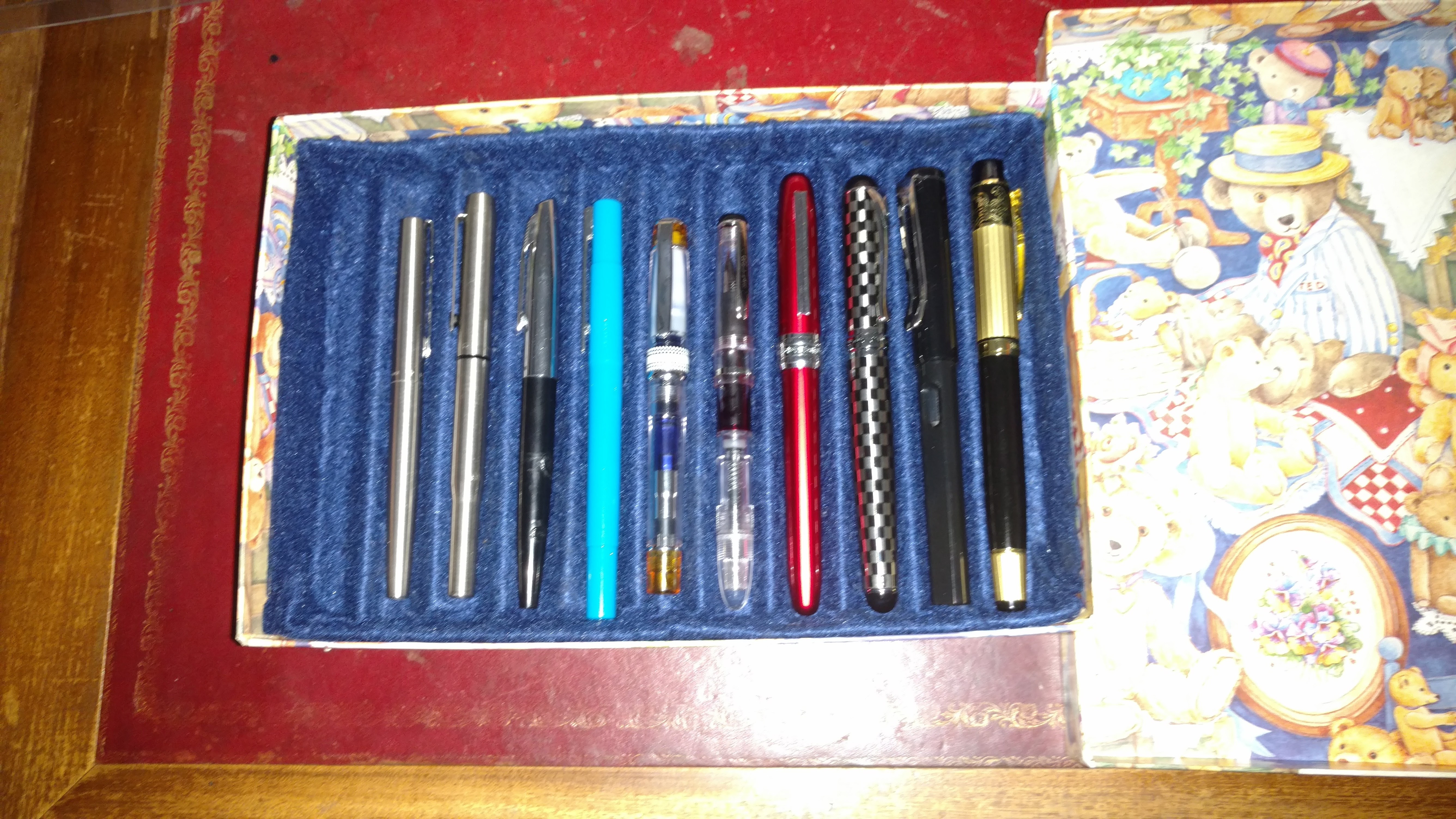 Prima o poi dovrò prendere anch'io un astuccio in pelle vera, di qualità, ma sempre molto capiente (perché dopo tutto l'effetto di una cinquantina di penne tutte in vista a colpo d'occhio non è affatto male).