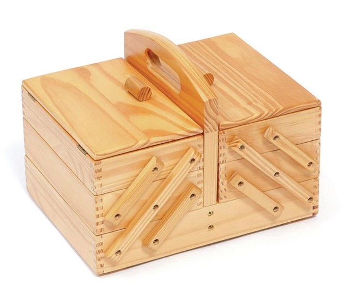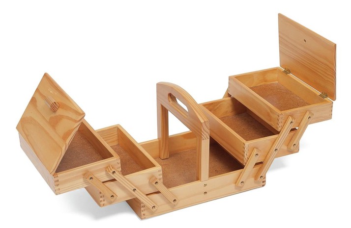 io da qualche giorno rimugino sulla possibilità di realizzare un portapenne partendo da una scatola per cucito in legno (che ancora non ho), di quelle che si aprono su più livelli, tipo questa in foto.