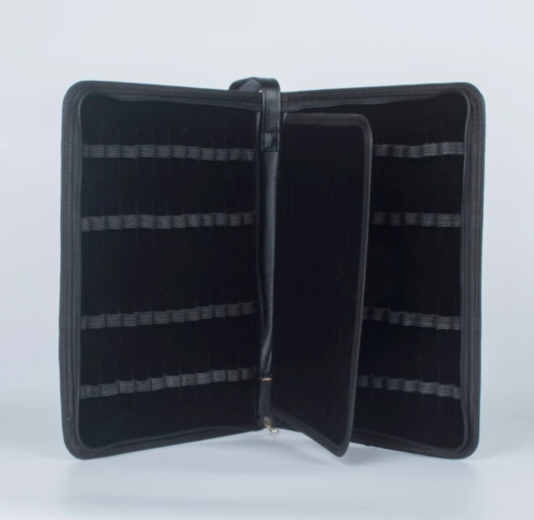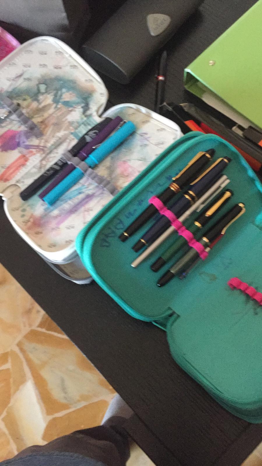 Per un buon periodo ho ricoverato le mie penne negli astucci da 48 posti, quelli che dalla Cina arrivano per una decina di euro (tipo quelli in foto) . Fatto sta che l'elastico nero, col tempo, ha lasciato tracce sulle penne in legno o in argento. Sulle altre non mi sembra ci siano segni. Quindi al momento sono titubante a riporle in astucci con elastico. (Anche se magari c'è elastico ed elastico.)