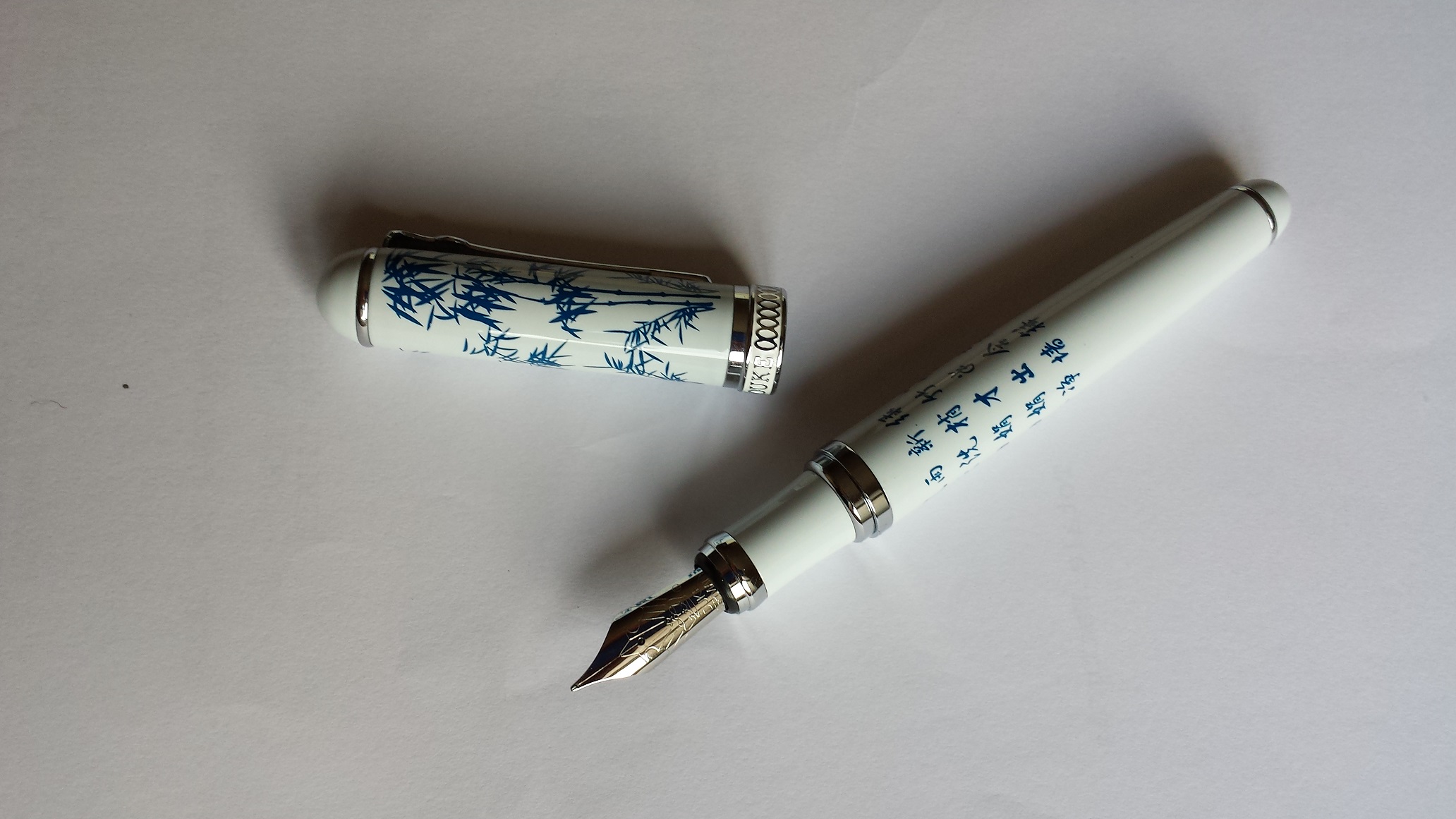 Penna bella, pennino ottimo; leggermente piccola in mani grandi, a meno che non la si usi con cappuccio calzato. Saluti