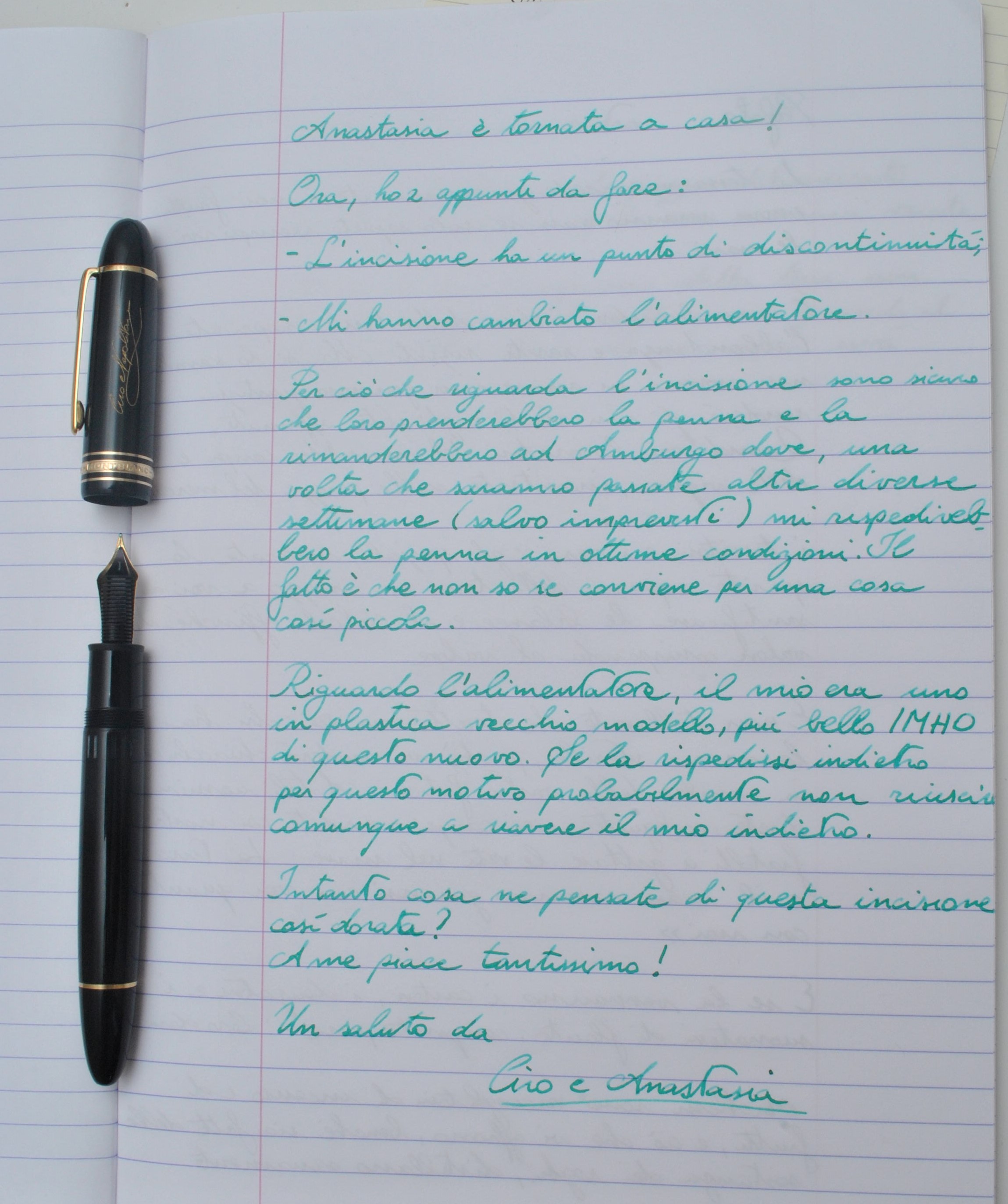 non capisco come sia possibile che con me siano sempre gentili in negozio e, secondo, che abbiano fatto una storia del genere. Far pagare per una crepa che non c'era o che non ti fanno nemmeno visionare è assurdo! Se posso sapere, che penna è la bella anastasia? 149?