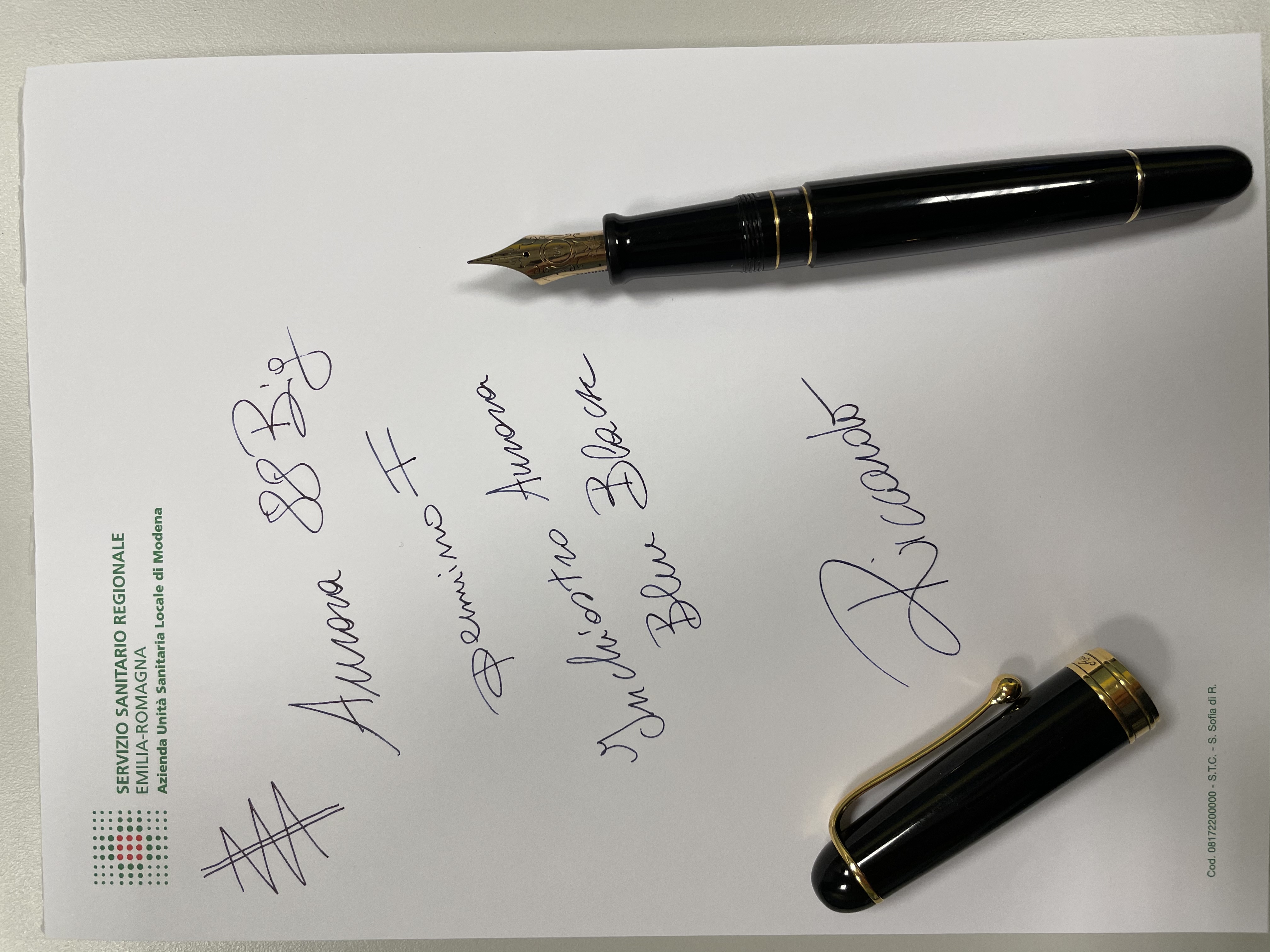 Mi autocito per aggiungere un esempio fotografico di quNto dicevo sulla 88 big e sul blue black in combinazione: tenete presente che è su carta fornita dall’azienda ospedaliera, quindi non certamente una Rhodia :lol: