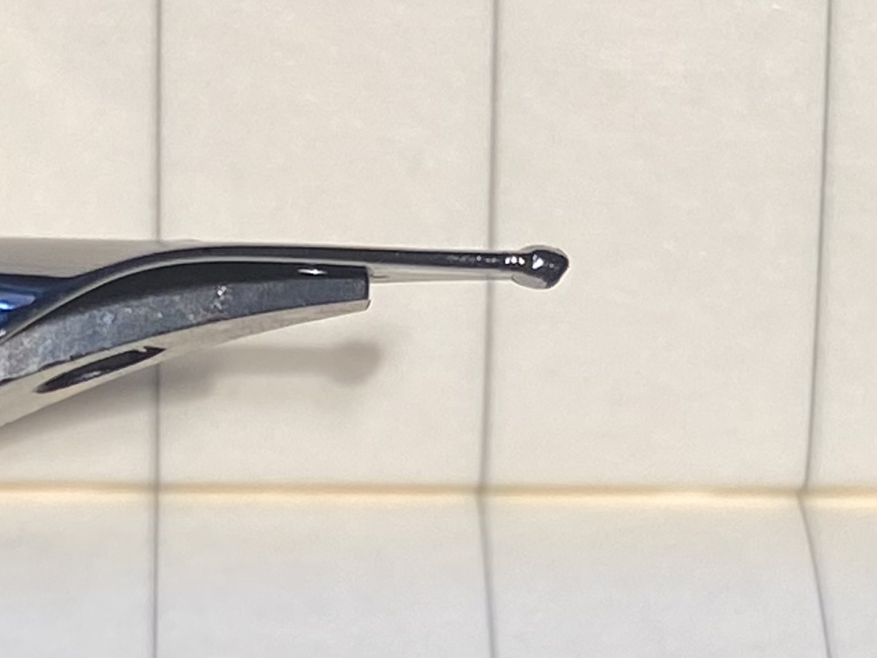 Praticamente: se impugno la penna normalmente, ovvero come tutte le altre che ho, scrive male o non scrive, perché poggia un solo rebbo a meno che io non calchi parecchio, troppo.