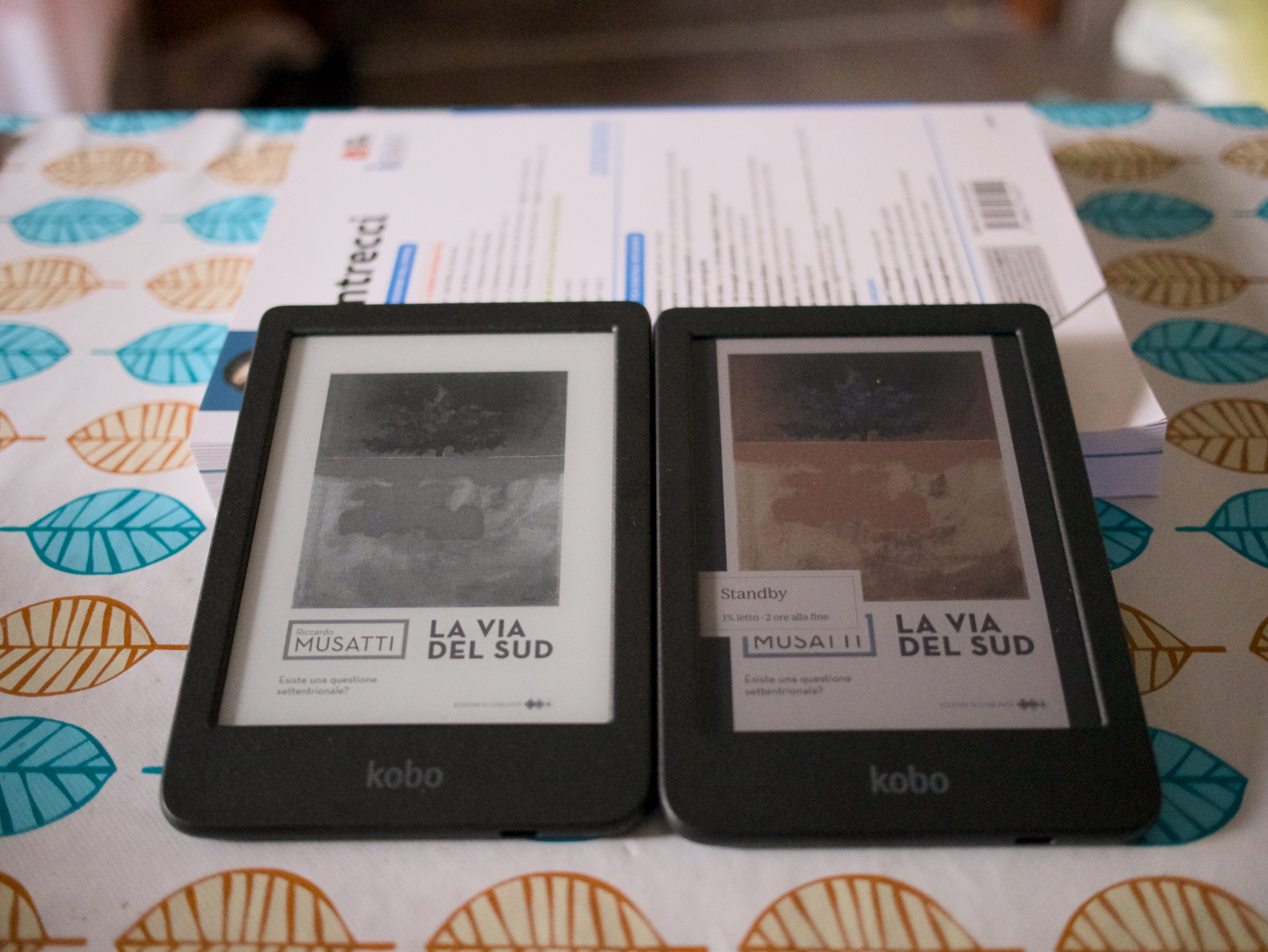Concordo in toto con Esme ed aggiungo che preferisco avere due device perché leggendo il tablet si scarica rapidamente e poi se voglio leggere il giornale è finita la batteria, invece il Kindle mi dura per ore e per giorni, quindi meglio due oggetti così ho due batterie. Il Kindle è più leggero da tenere in mano degli 11 pollici dell’Ipad e leggere a letto è una tortura tenendolo con una mano sola, infine l’e-reader è più robusto ed ho meno pausa di danneggiarlo se lo porto sulla spiaggia o in barca, lo metto nello zaino e via.