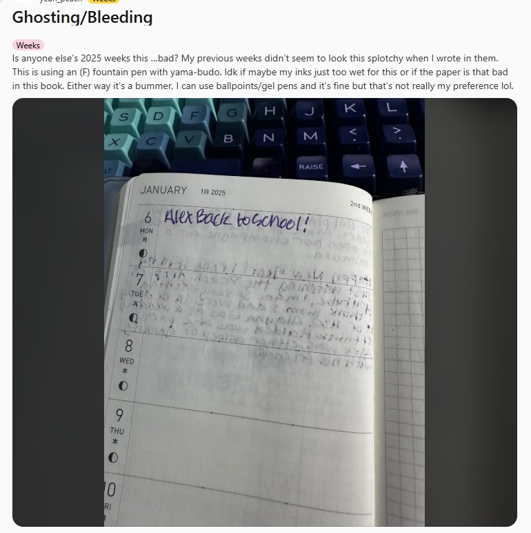 Le discussioni su Reddit a ottobre erano molto infervorate: molti riportavano le risposte ufficiali di Hobonichi, ed erano arrabbiati proprio per il tono paternalistico con cui l'azienda spiegava che l'utilizzo di una carta sottile avrebbe dovuto renderli attenti all'utilizzo di strumenti di scrittura idonei.