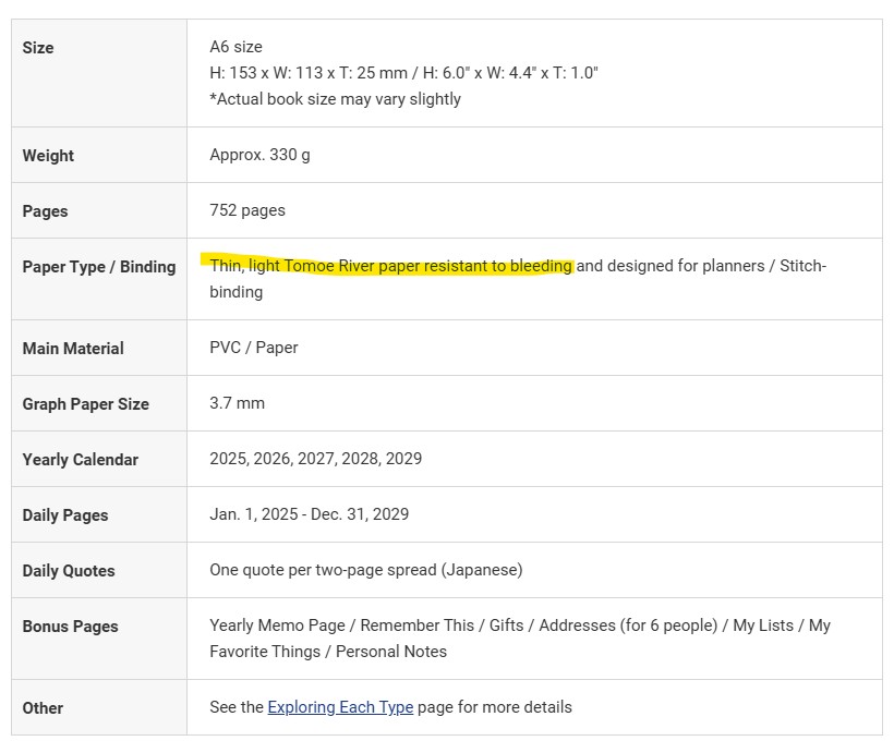 Sulla questione grammature, Hobonichi non riporta la grammatura.