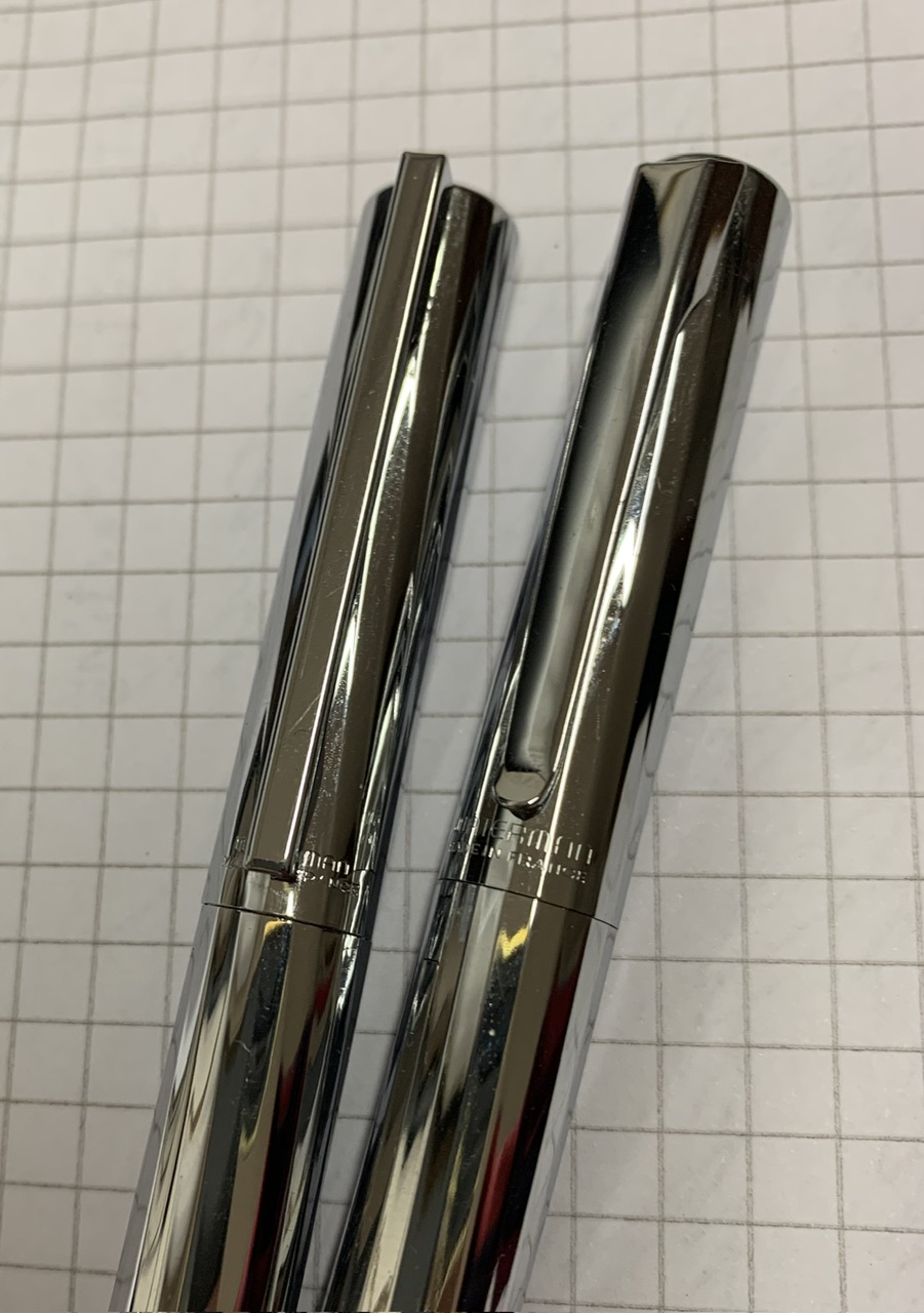 Sul tratto è difficile valutare, anche perché ora hanno inchiostri diversi: pelikan 4001 royal blue la Studio-C, Waterman Serenity Blue la 555/F. Hanno entrambi variabilità, ma direi che la Studio-C sembra poter produrre un tratto con maggiore variabilità, ma il flusso della 555/F con il Waterman è decisamente abbondante e questo riduce le variazioni... Scorrono benissimo entrambi.