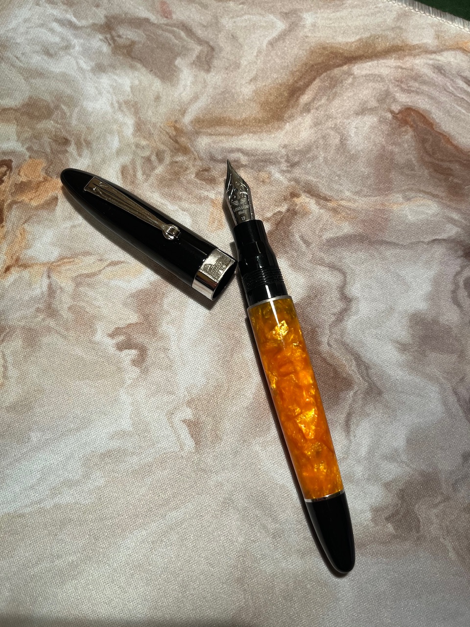 Probabilmente non dovrai attendere tanto. Salvatore è inarrestabile, al suo banchetto del pen show mostrava altre versioni (di cui colpevolmente non ho fatto le foto) una aveva tipica livrea nera arancio Dolce Vita, e un’altra colori del Napoli (fusto azzurro e cappuccio e fondello bianchi)! Giusto per dire che ne ha 4 ufficiali ma già ne sta provando altre :)