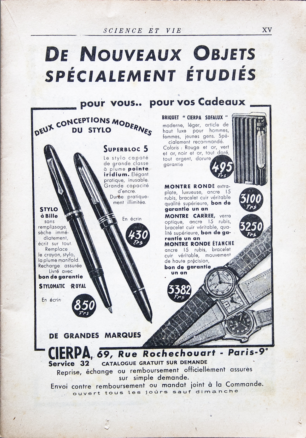 Pubblicità tratte da Science et vie - aprile 1948