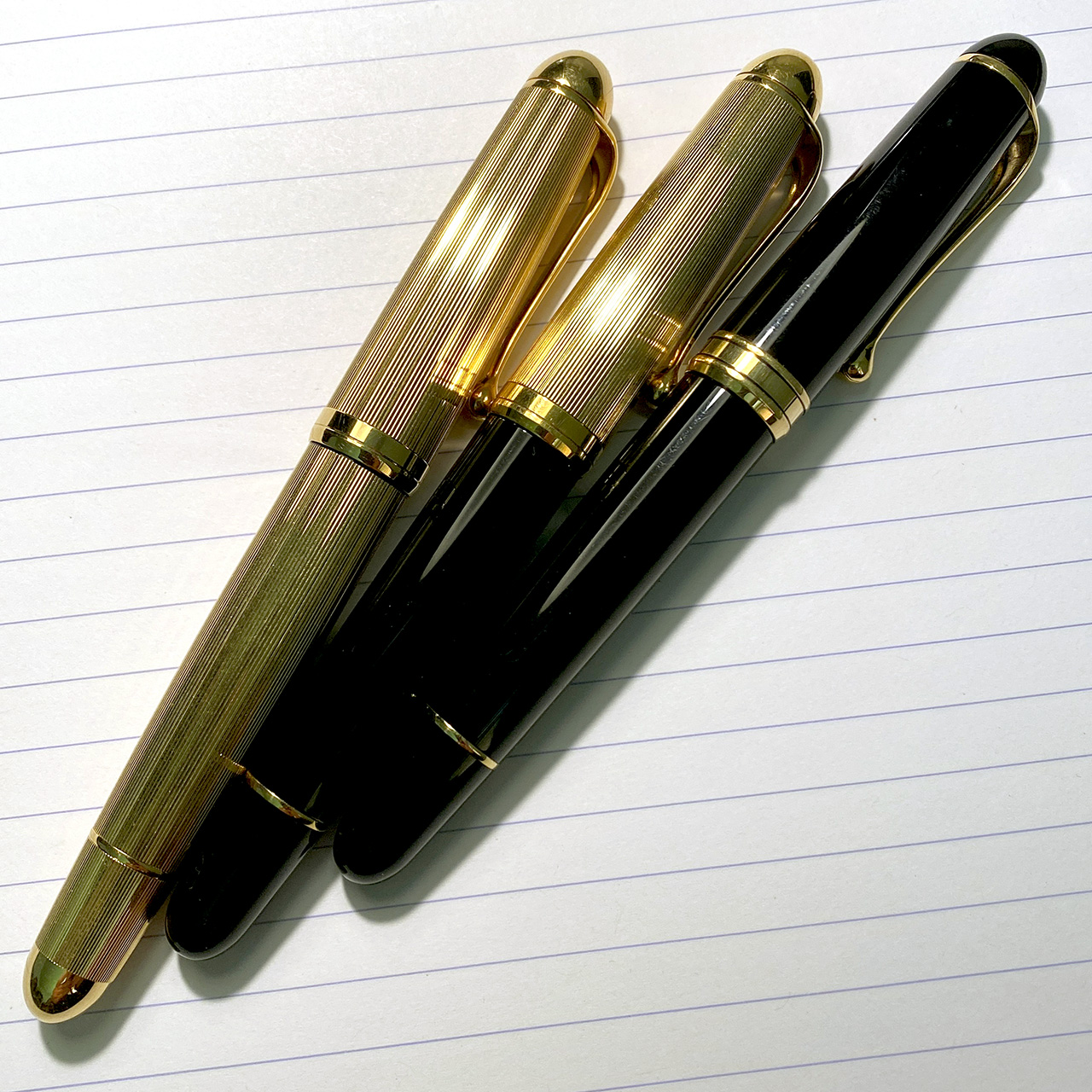 Da sx: Parker Duofold Centennial, Radius Superior, Leonardo Nuda, Parker Duofold Senior, Goldfink cusTom![]()