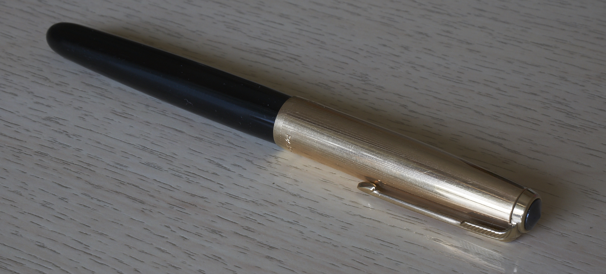 -Parker 51 (2696/4-Sul cappuccio: 1/10 12cr. R. Gold Made in England). Dalle informazioni trovate sul sito, la penna (o almeno il cappuccio) dovrebbe risalire ad un periodo compreso fra il 1958 ed il 1960.