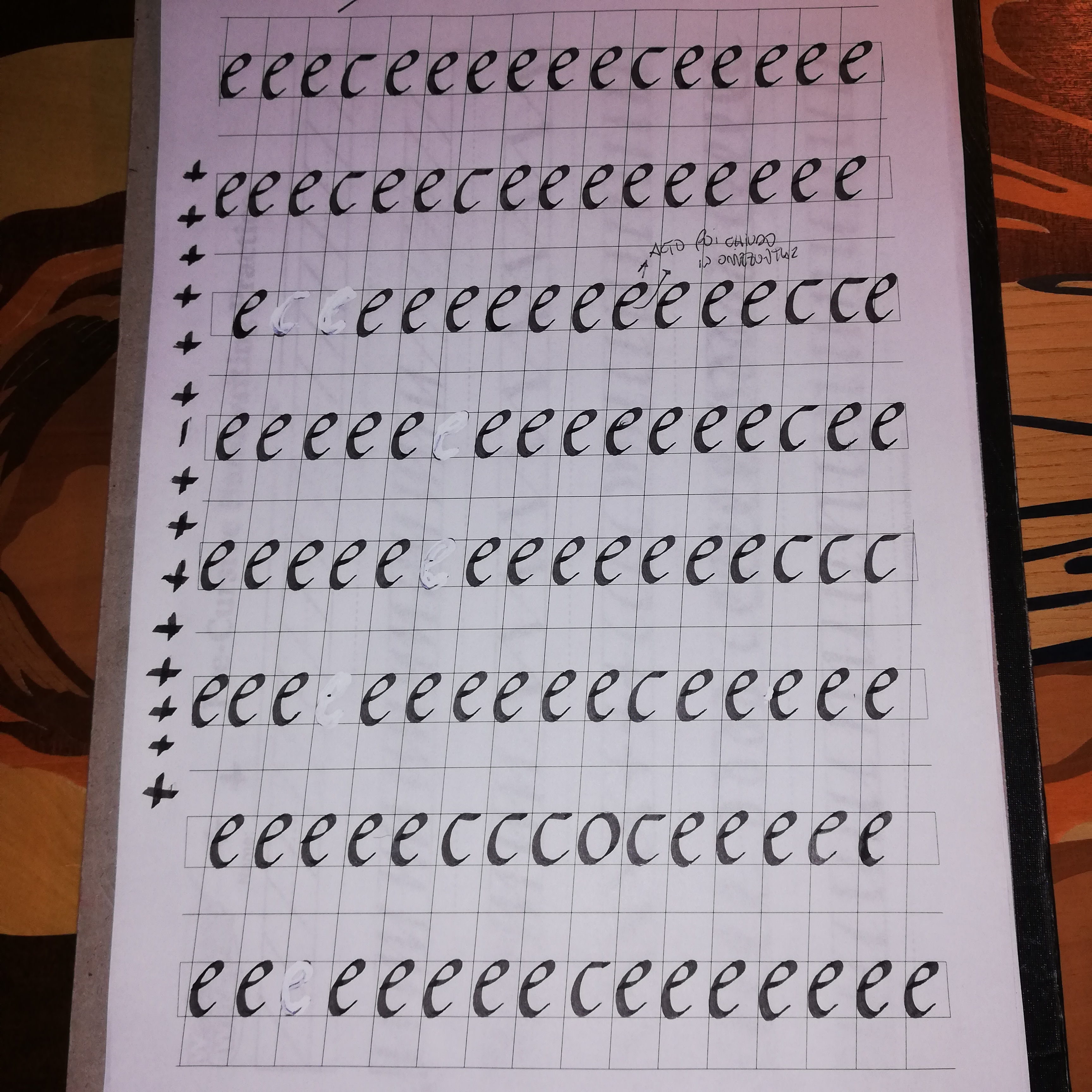 Ho spostato qui il messaggio con cui hai aperto un nuovo argomento, in modo che si possa continuare a ragionare in un argomento unico dei tuoi progressi con la Cancelleresca. Altrimenti, aprendo ogni volta un argomento nuovo, tutto diventa più frammentato e discontinuo e diventa molto più complicato fare paragoni con gli esercizi precedenti e seguire il percorso che hai intrapreso con questo stile.