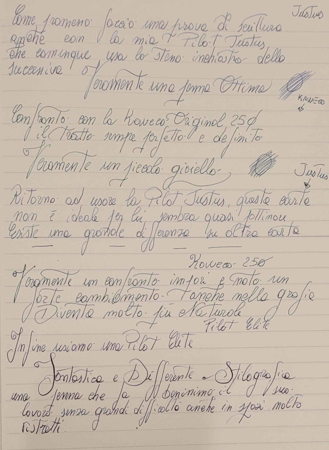 Allego anche una paginetta con la Pilot Justus - Kaweco Original 250 ed infine la Pilot Elite (non conta perchè era quasi secca)