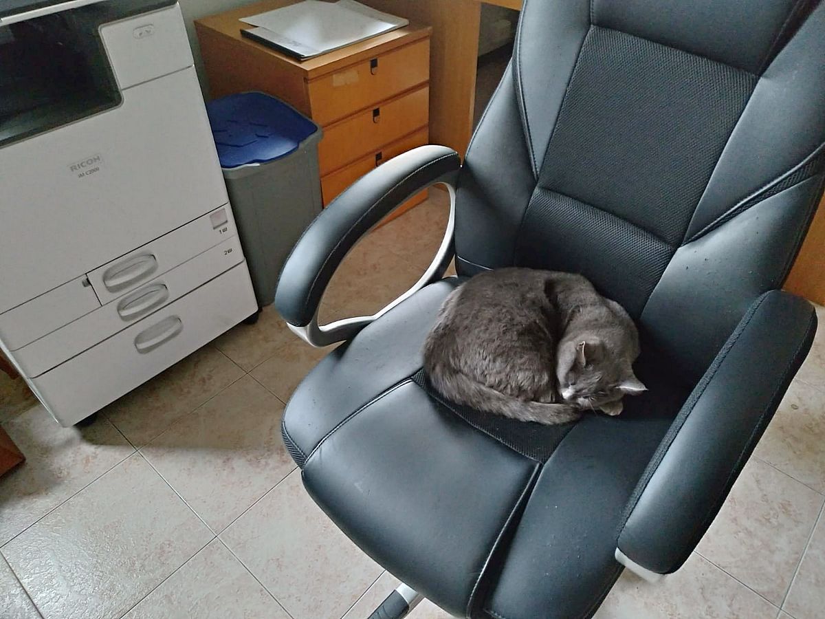 La padrona dell'ufficio sulla poltrona (mentre io sullo sgabellino).