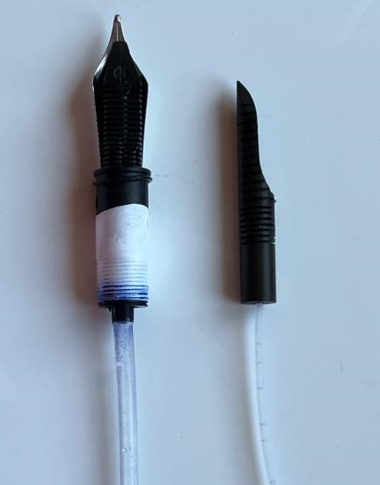 @sansenri, giusto per capire, il tubicino è infilato nella parte centrale (dove originariamente c'è il perforatore della cartuccia ed il canale per l'inchiostro), poi a lato hai effettuato un piccolo foro che servirebbe per il passaggio dell'inchiostro sia in fase di carico penna , sia per erogare il flusso quando la penna scrive ?