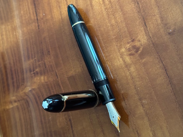 Finalmente il porta penne di Galen Leather è arrivato e così ho potuto riempirlo con la nuova arrivata, 149 MB pennino F.