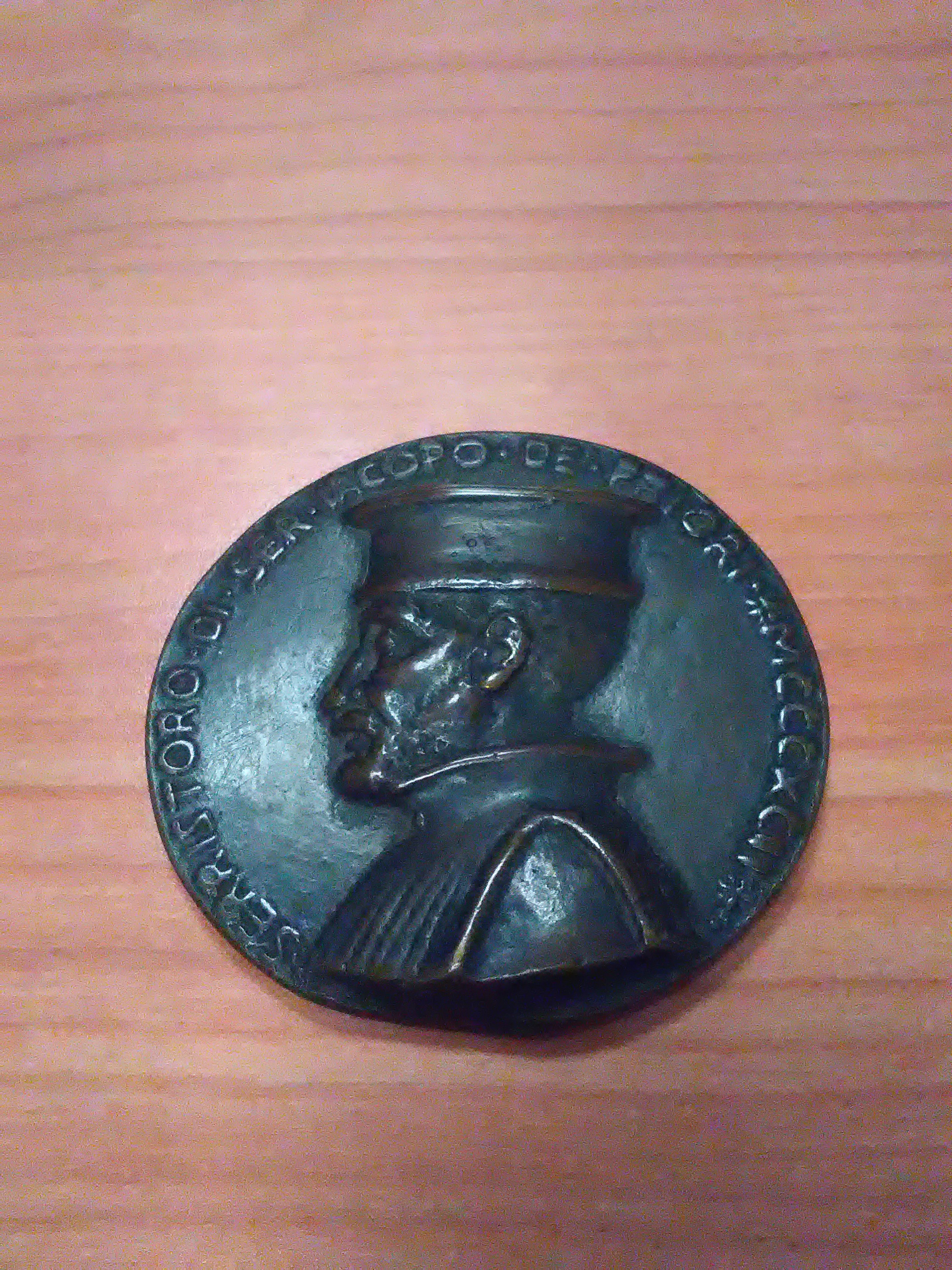 Giusto per cambiare, fusione a cera persa del Fabbi, eseguita nei primi anni del novecento, di una medaglia del 1392. Il personaggio è Serristoro di Ser Jacopo, priore della Repubblica Fiorentina e fondatore dello "Spedale Serristori" a Figline Valdarno nei pressi di Firenze.