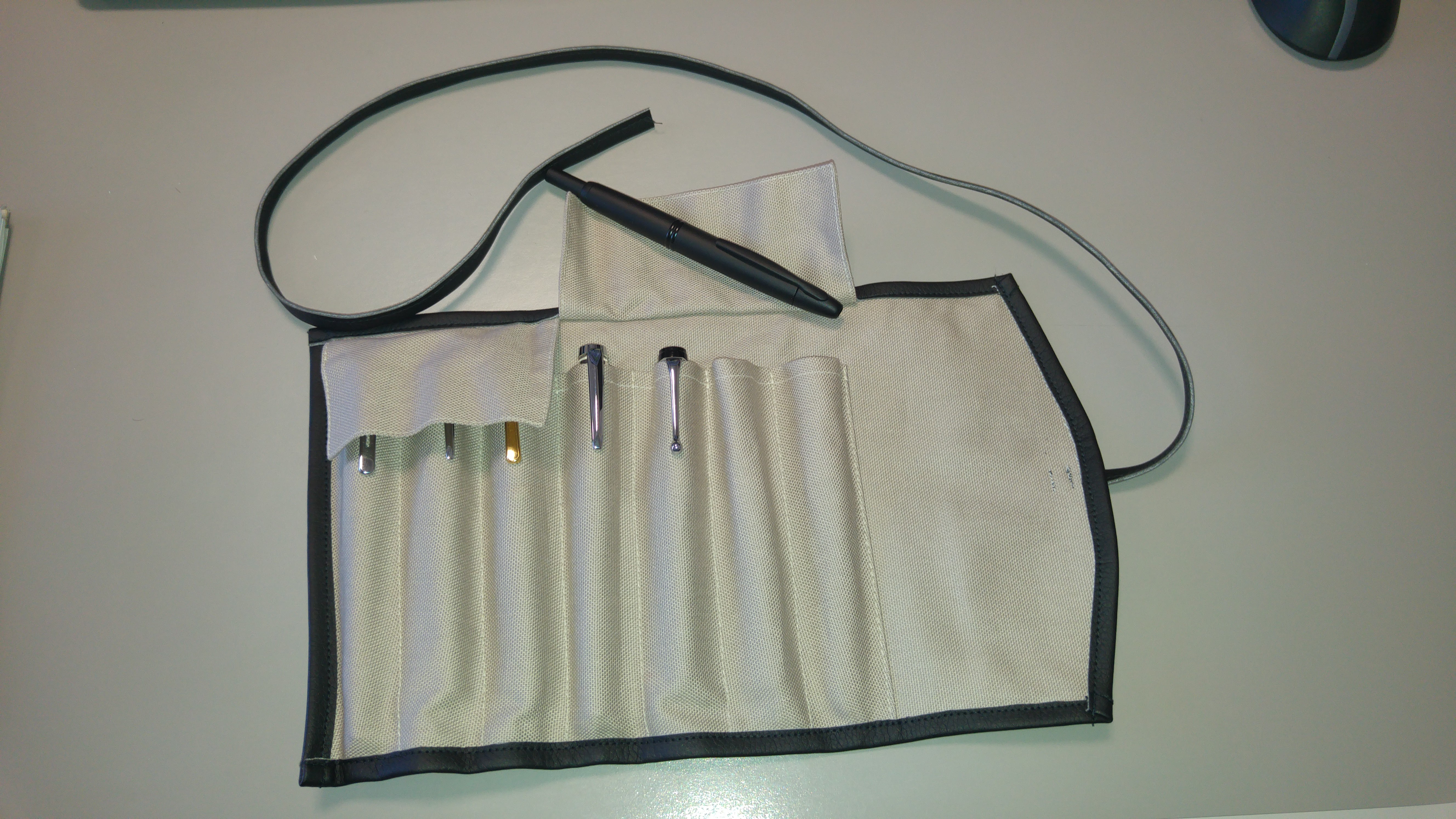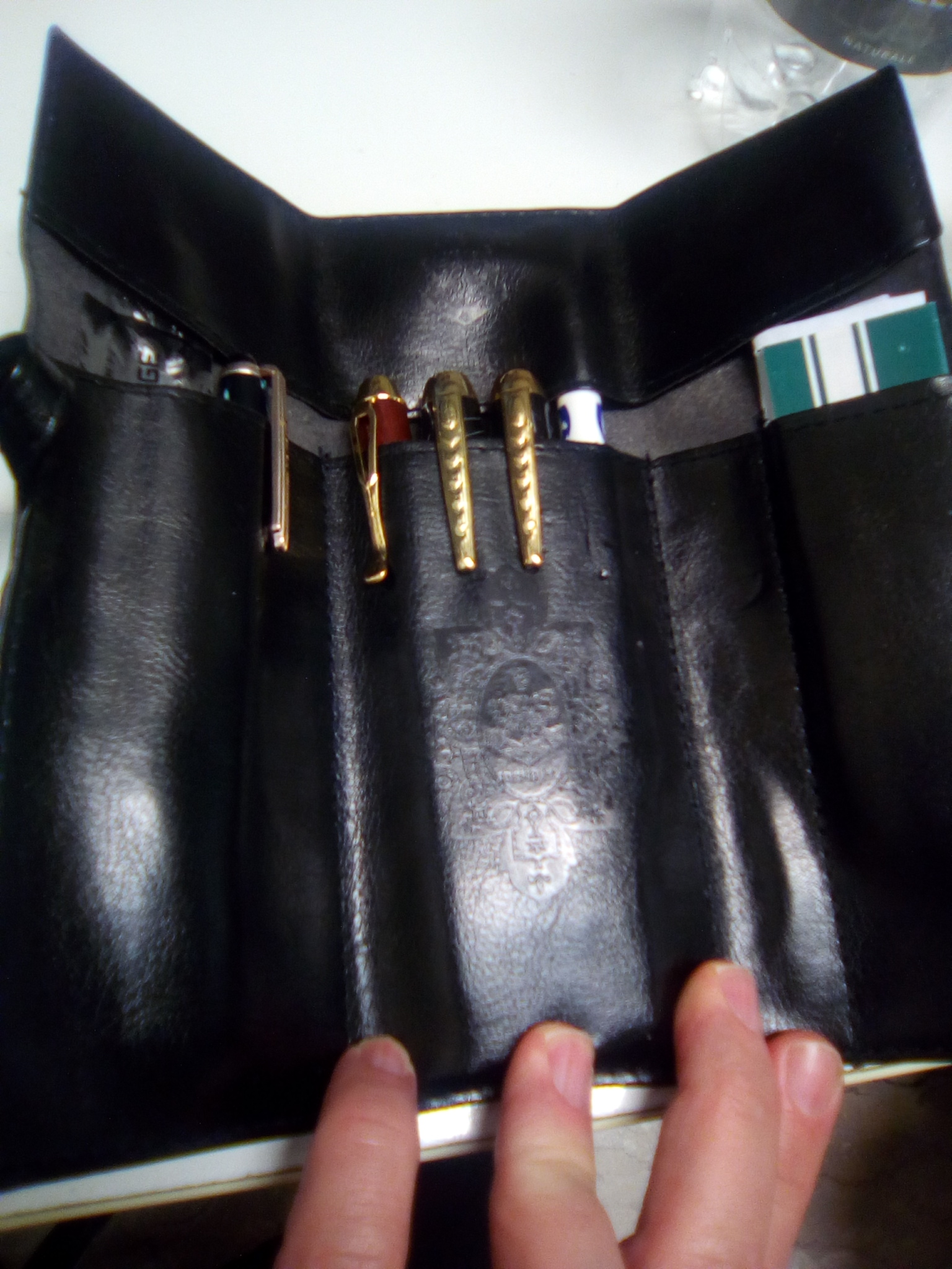 Beh no sai, alla fine è un astuccio che ho semplicemente sostituito a quello classico di tela... lo metto nella tracolla, in una tasca, ed è fatta. Più vabe se sono in giro senza la tracolla, una penna comunque me la porto dietro nel taschino della giacca o in altro modo. Sono parte del mio abbigliamento, non potrei mai uscire di casa senza una mia stilografica e il mio orologio da taschino!