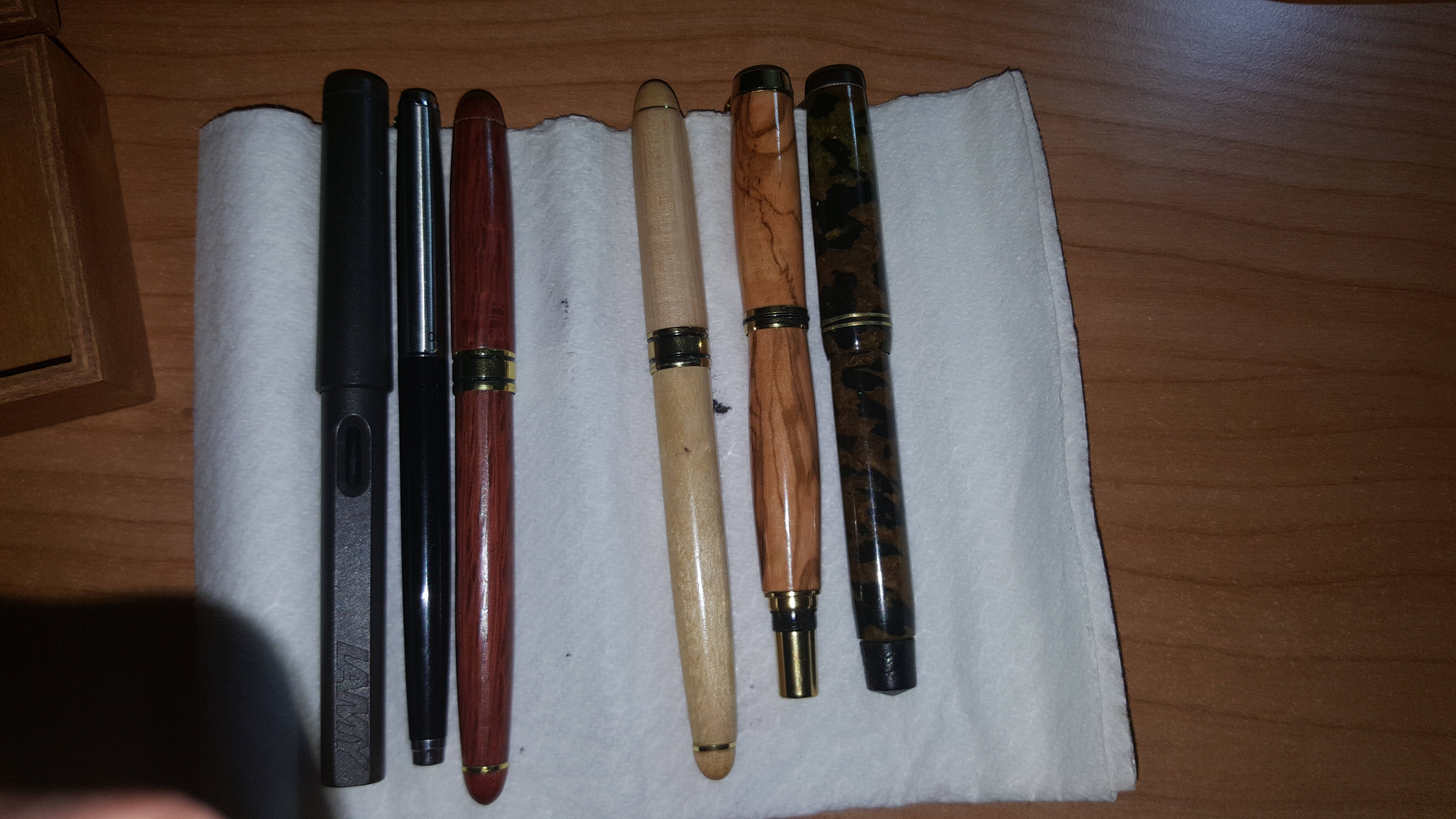 Io ho comprato su internet un astuccio di legno e l'ho ripassato con un prodotto che uso in casa per i mobili, una specie di "nutriente" per legno... contiene serenamente 6-8 penne, avvolte in un panno morbido. La cosa bella è che inizialmente l'astuccio era ruvido, onestamente poco piacevole al tatto; grazie a quel prodotto, passato in due volte e ripreso ancora ogni tanto, il legno ha guadagnato lucentezza ed è più gradevole al tatto, liscio a morire!
