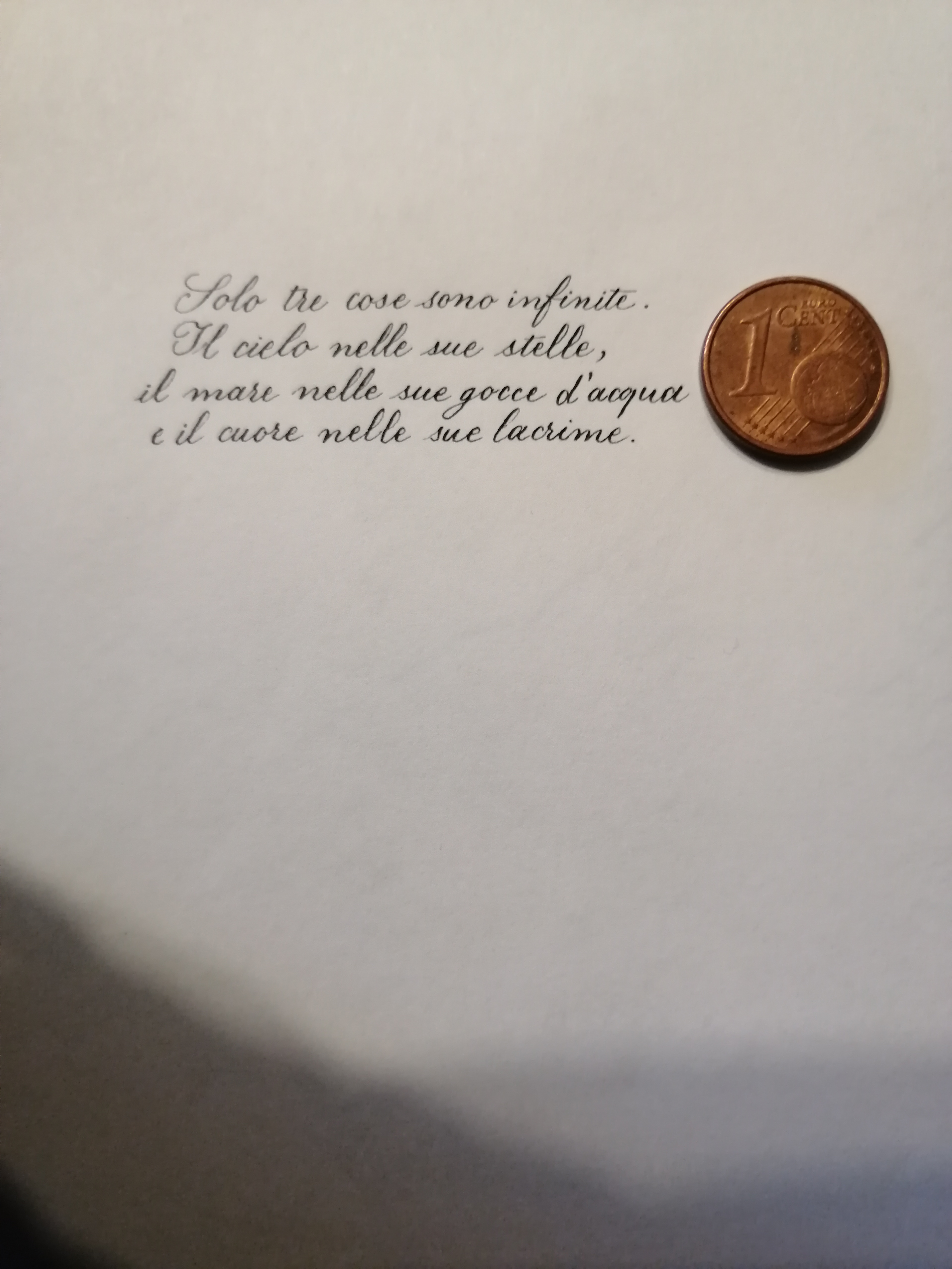 Bellissimo il tuo italico, armonico e ordinato! Una scrittura semplice e perfetta.