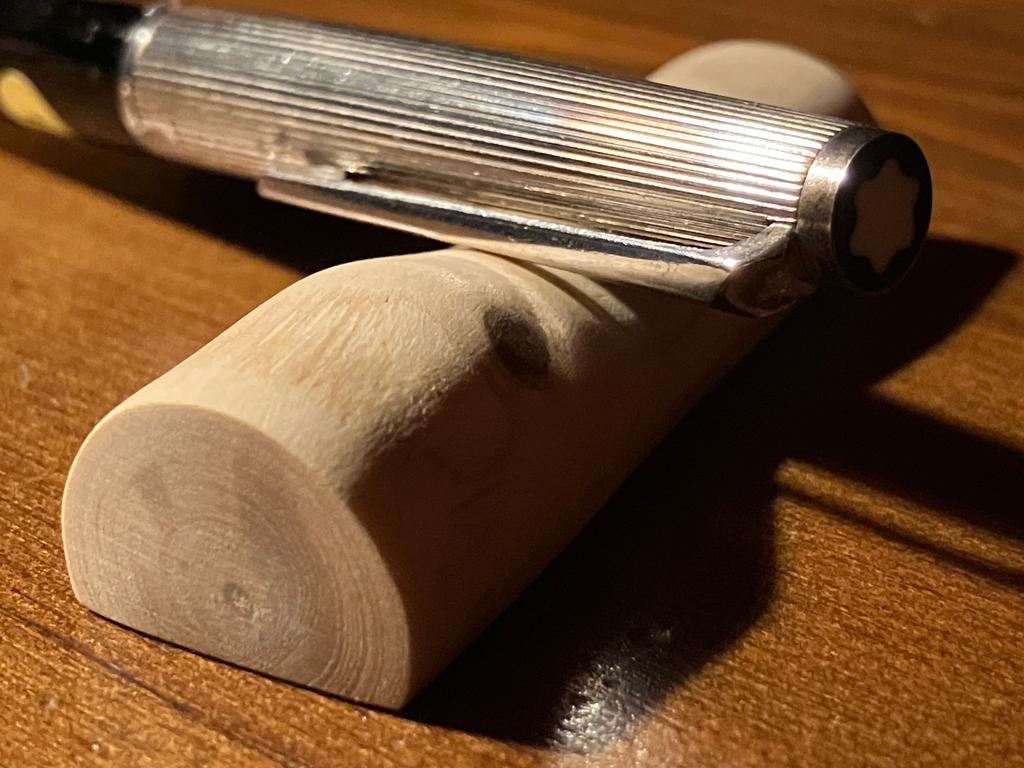 da notare che la sezione si è ridotta (limato sotto), quindi il profilo adesso è più basso, e la penna tende a scivolare molto meno di prima