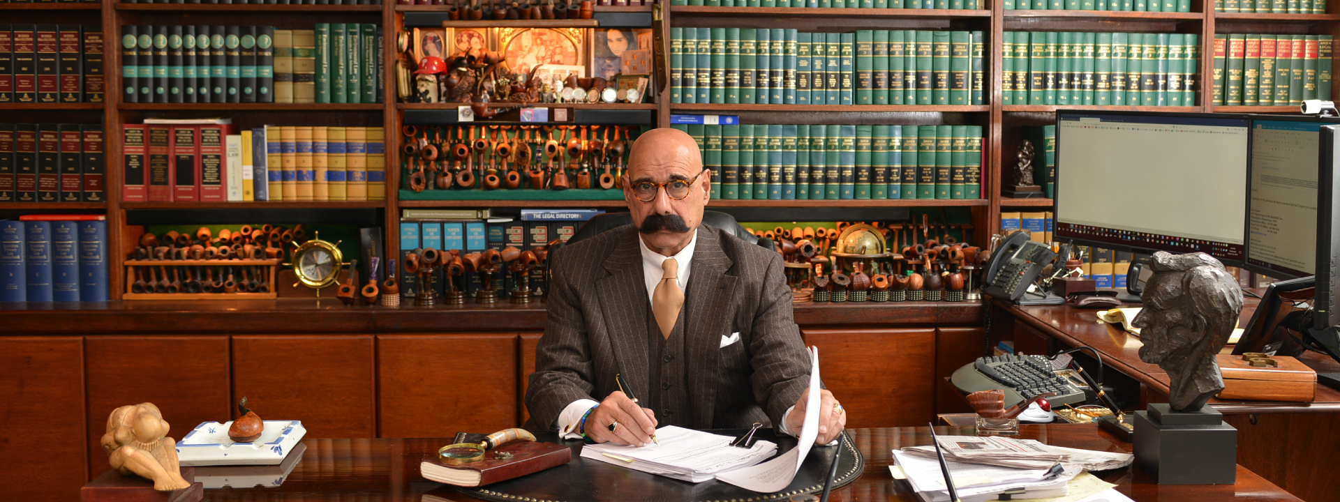Questo personaggio è comunque uno malato come noi: guardate il numero di pipe che ha in ufficio