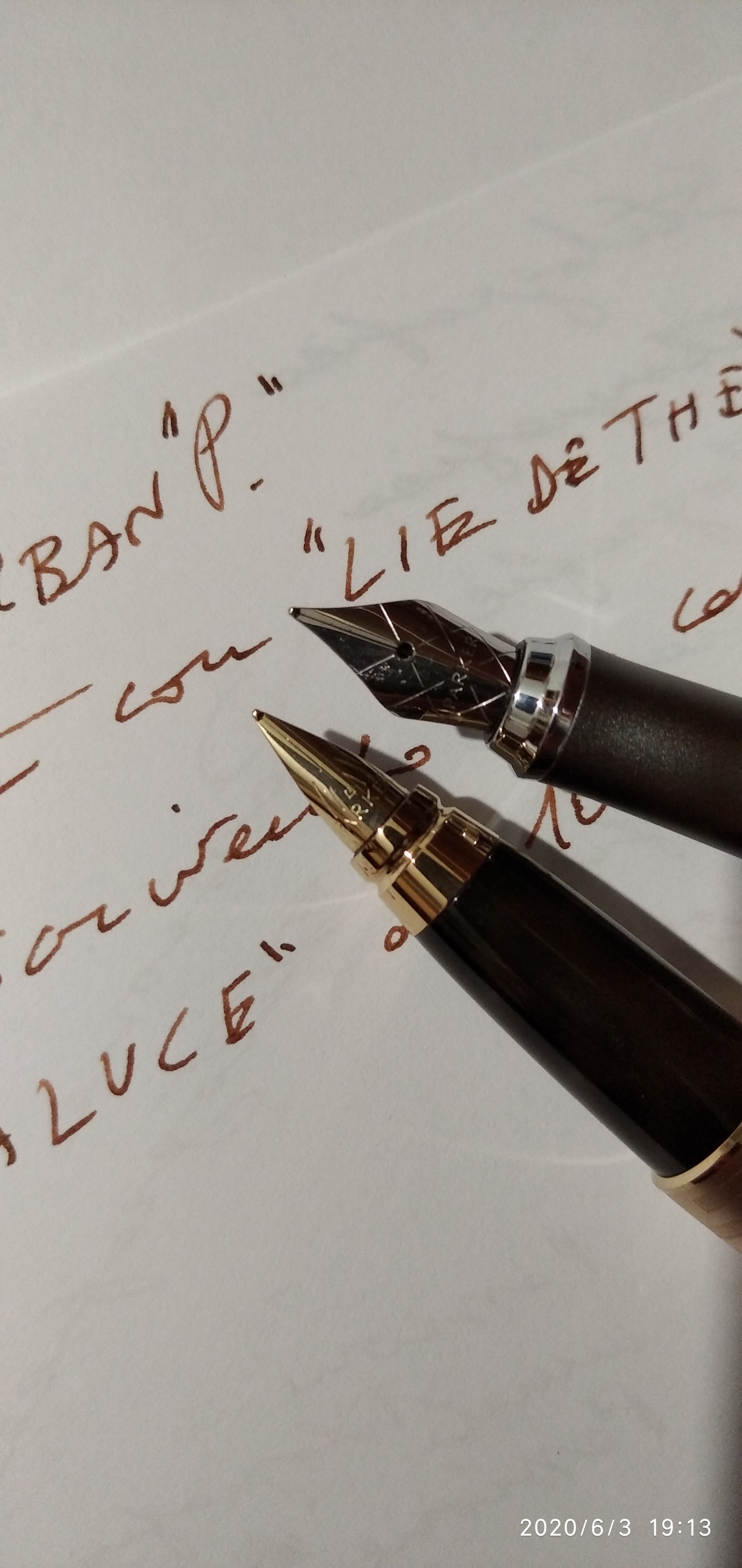 Accaduto anche a me con la prima Urban (modello vecchio), quella che presi mesi fa. Ho dovuto agitarla un bel po' prima che cominciasse a bagnarsi, tanto che all'inizio temevo d'aver beccato una cosa rotta. Sverginata con la cartuccia Parker in dotazione. Mi sto convincendo che sia l'inchiostro Parker a fare davvero schifo, almeno quello da cartuccia, perché anche le due IM mi hanno dato grattacapi solo con questa marca. Invece con Diamine, R&K, J. Herbin, mai nessun problema.