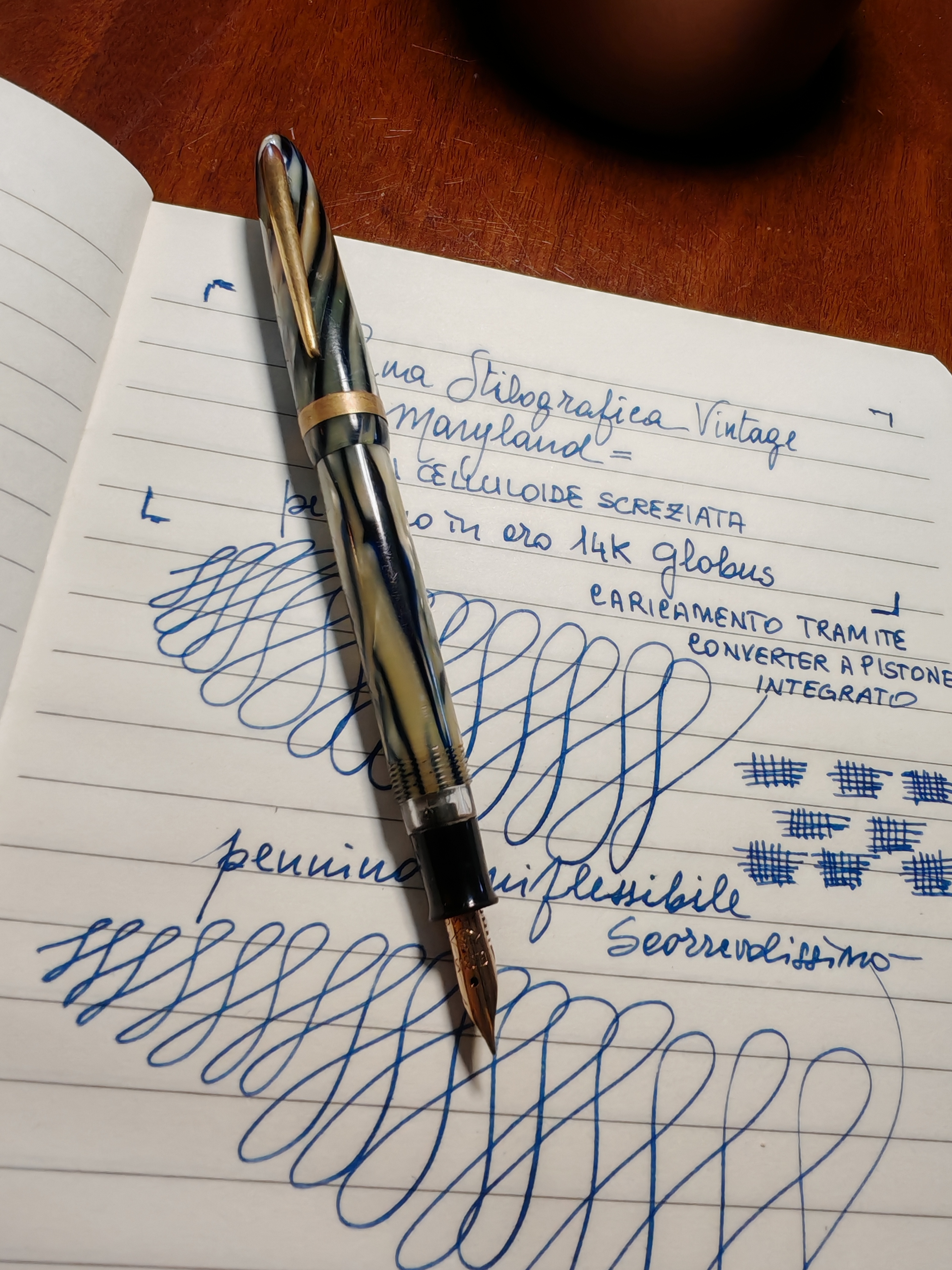 solstizio71 ha scritto: domenica 5 ottobre 2025, 11:31 Una Maryland (Settimo Torinese) in celluloide e pennino in oro 14k (Globus).