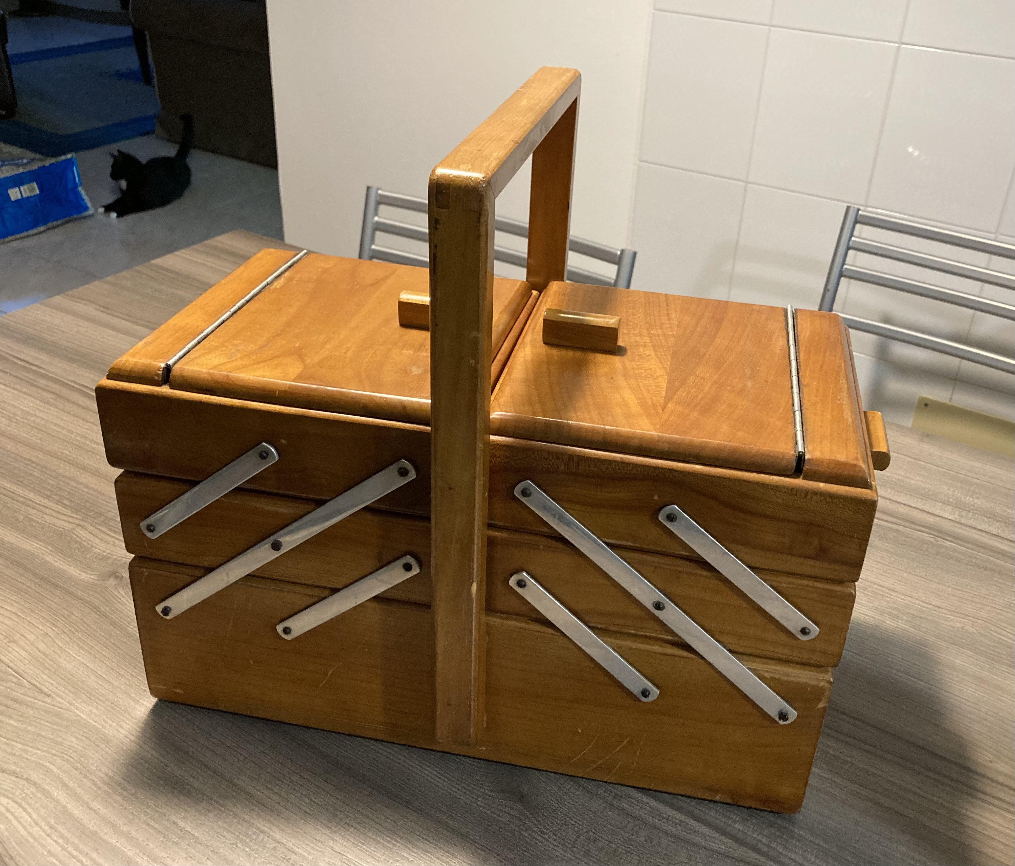 Dai mercatini dell’usato di oggi! :clap: Sono proprio contenta. Portalavoro in iegno anni Quaranta. Ci sta un sacco di roba! :thumbup: