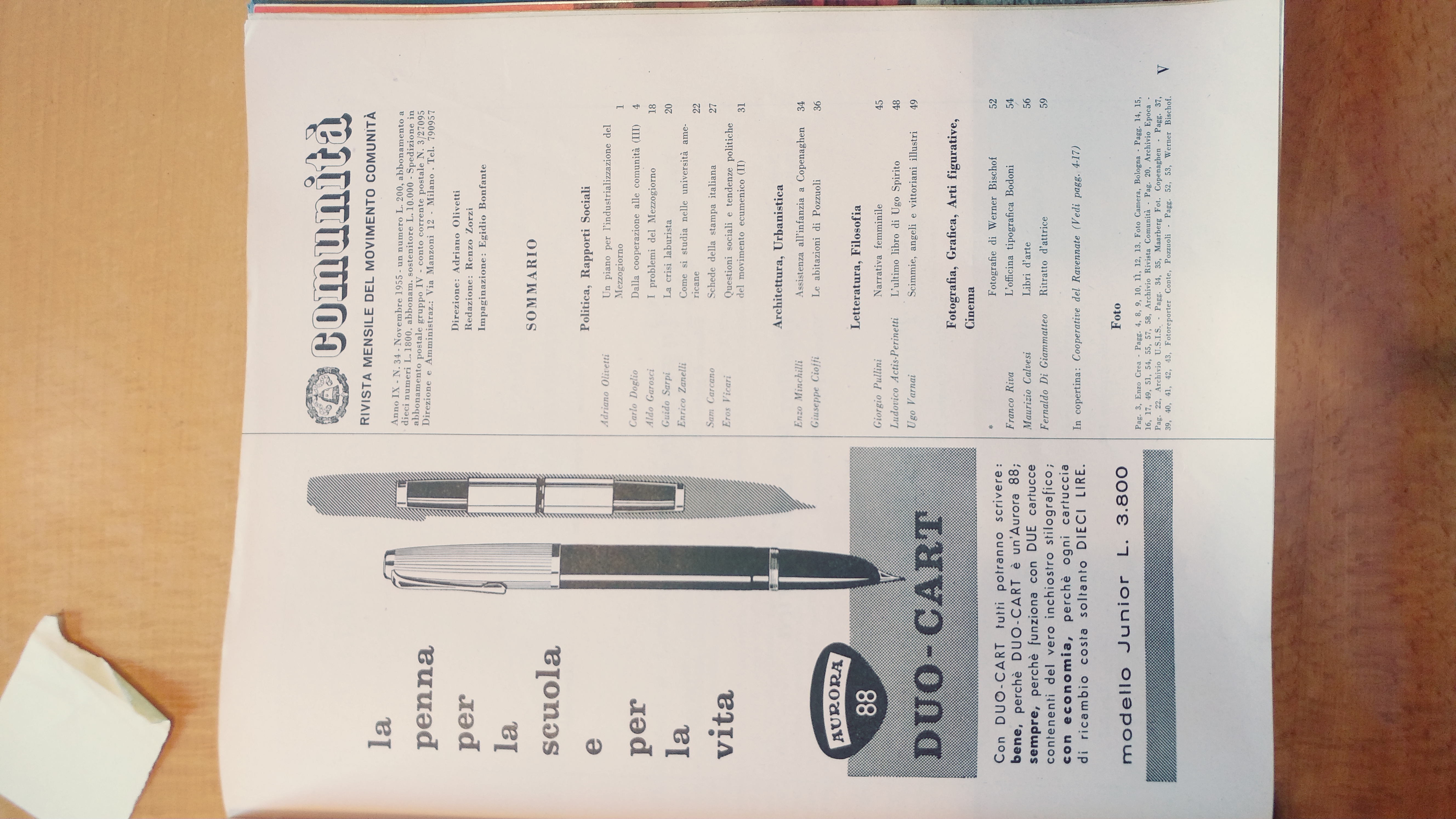 Oggi ho fatto un po' di ricerche sulla rivista Comunità, finanziata da Olivetti. Dai numeri sono uscite pubblicità di Aurora (ultranote) Reynolds. Ne carico alcune.