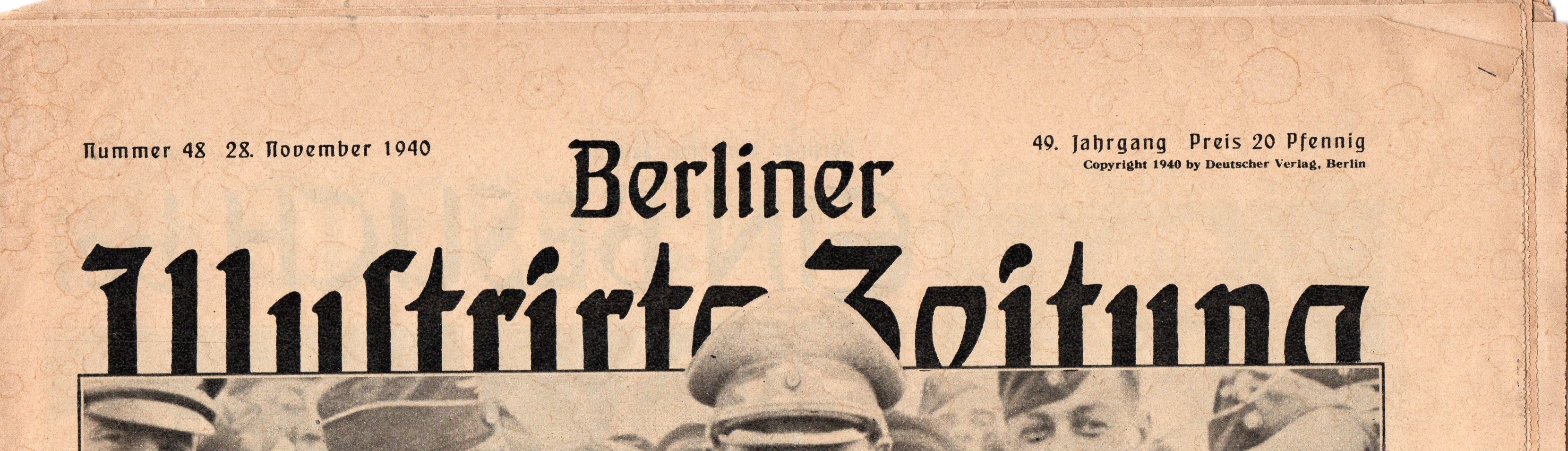 Con una curiosità però: la mia è una pubblicità presa da un volume intitolato Berliner Illustrierte Zeitung (e non Illustrirte). Stessi caratteri di quelli del titolo questa rivista (un esempio su internet è questo https://repository.duke.edu/dc/broadsides/bdsge20004, domani se mi ricordo la fotografo, ce l'ho in ufficio) ma nuovo titolo che su Wikipedia viene fatto risalire al 1941, ma che qui pare in uso (apparentemente non con continuità) dal settembre del 1940.