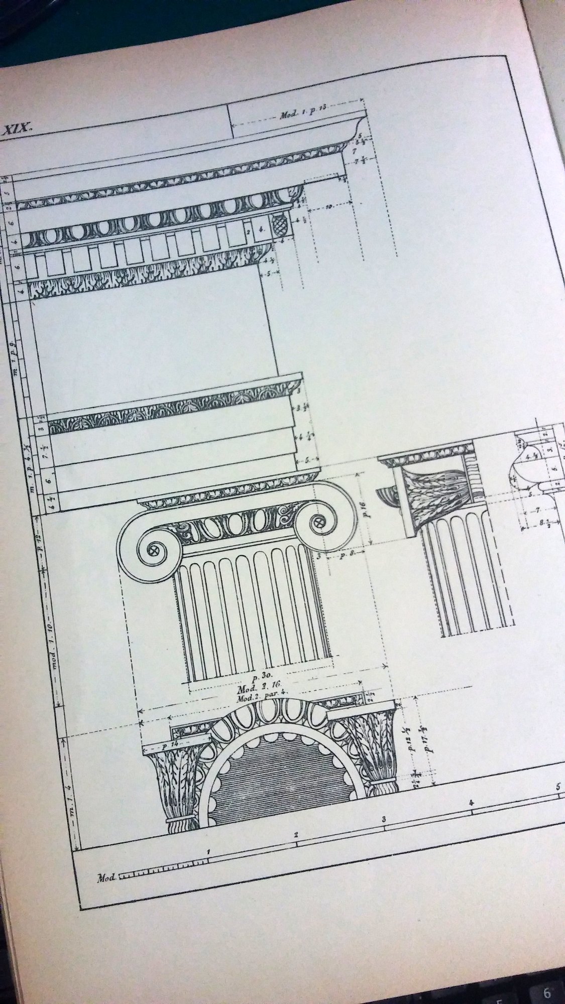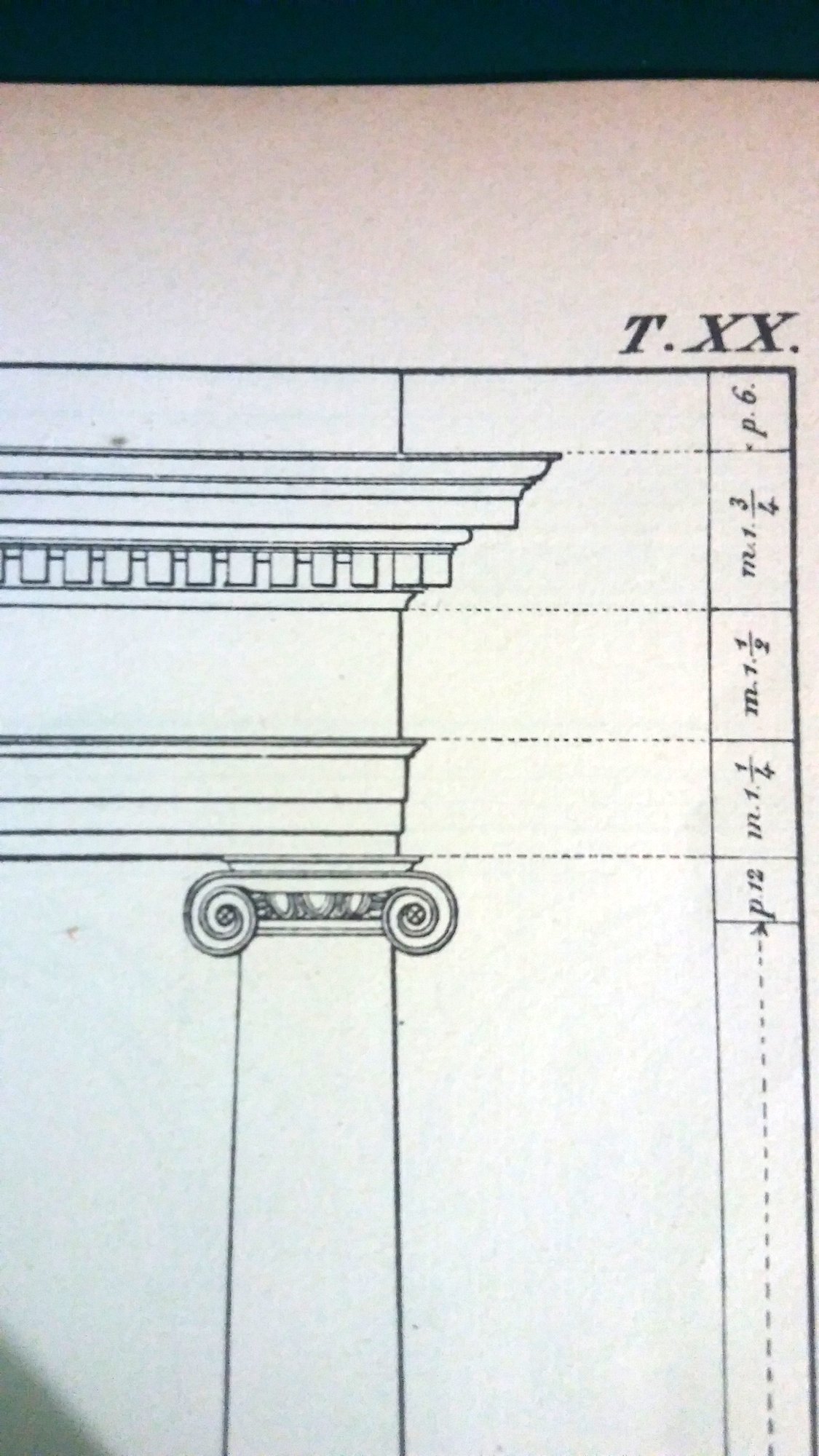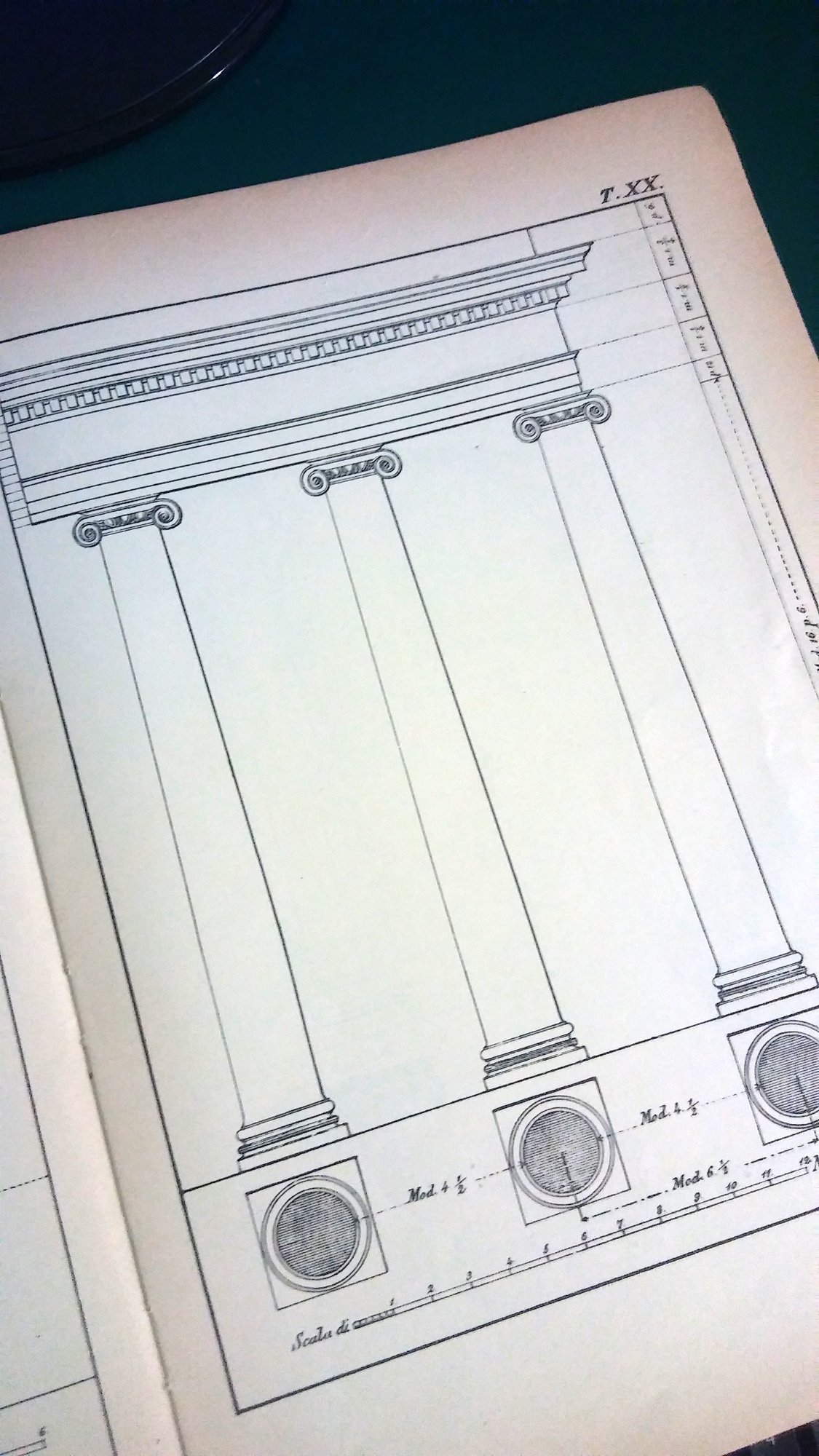 A occhio e croce l'illustratore si è ispirato al classico ordine Ionico. Credo che si sia concesso qualche libertà sulle proporzioni dell'architrave nel frontone, immagino per poter ospitare la seconda riga di testo. :think: