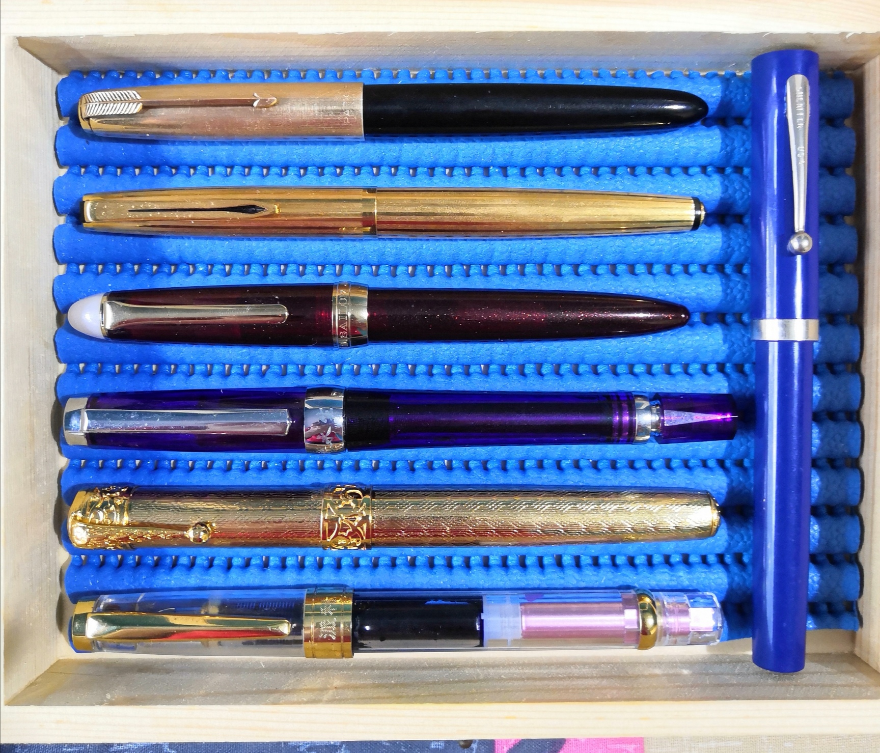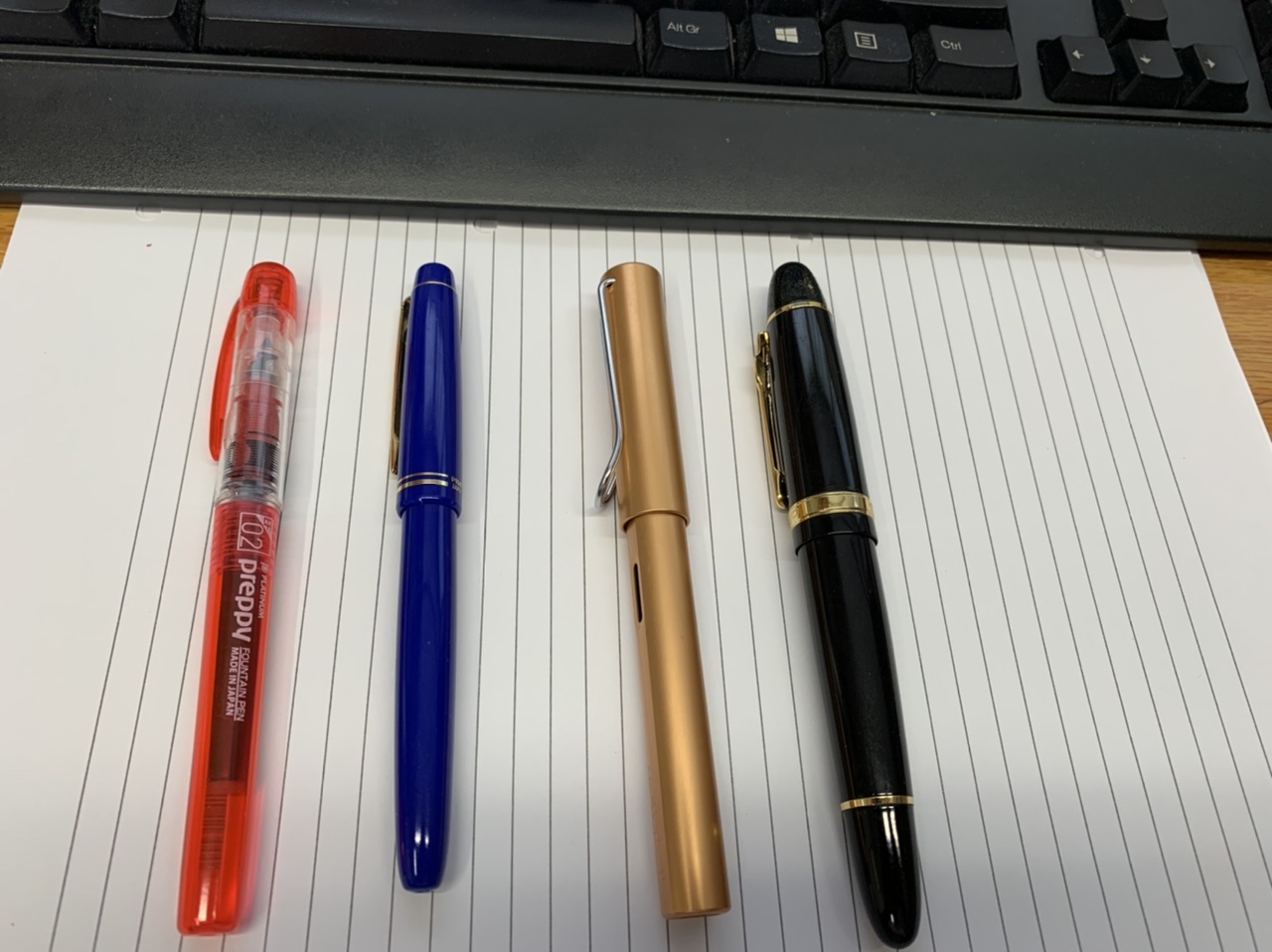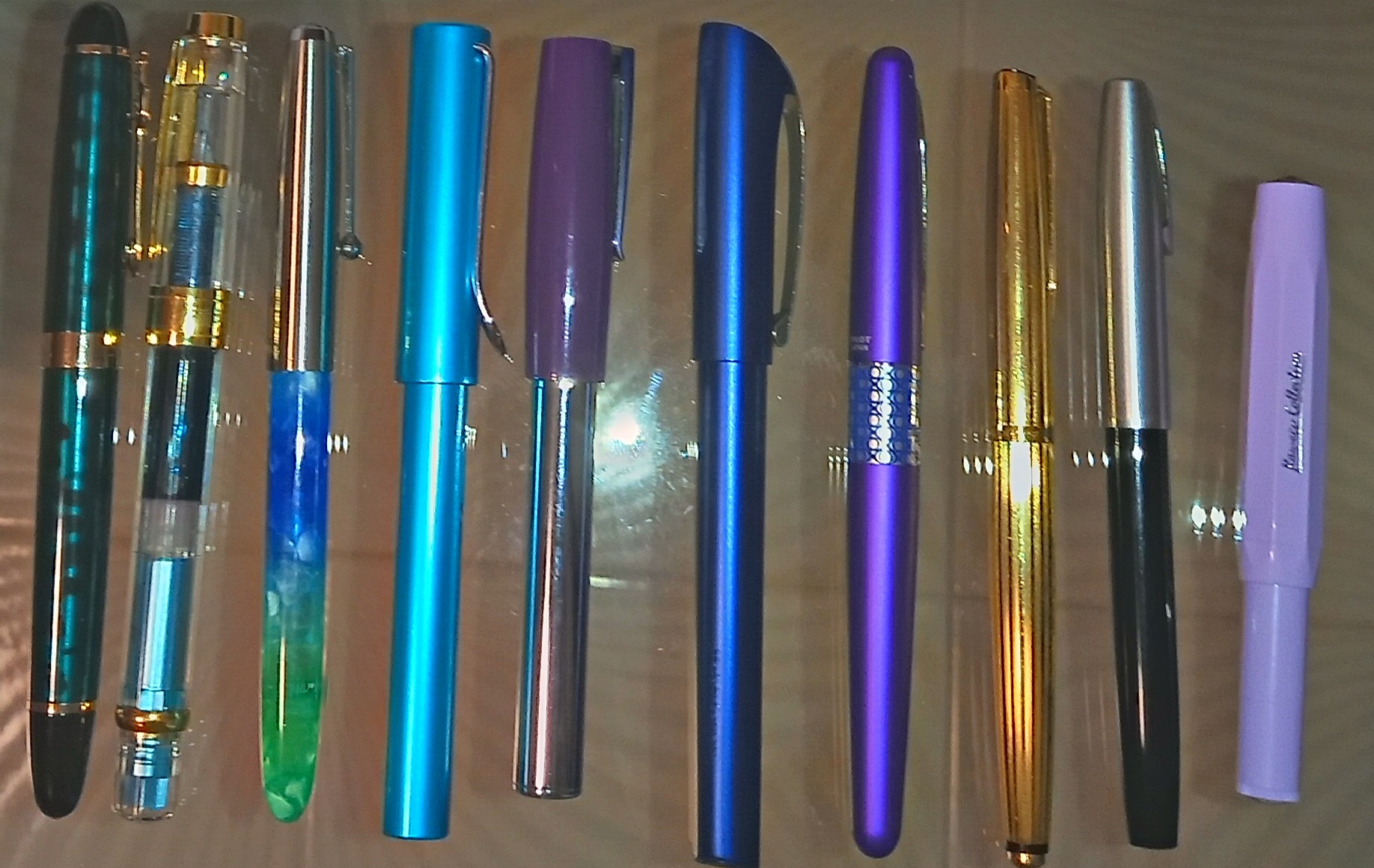 Le mie eterogenee penne cariche al momento, dall'alto:
