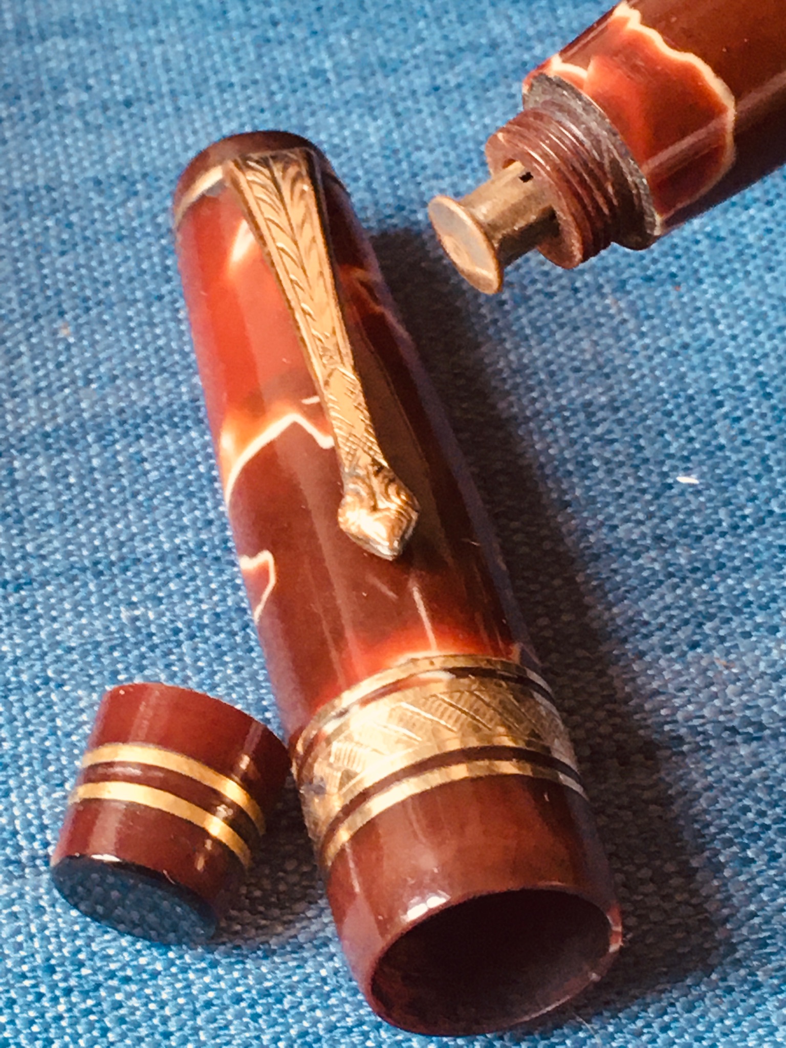 Modello60 ha scritto: domenica 1 agosto 2021, 5:01 Buon pomeriggio amici, l'ultimo mese d'inverno è arrivato in Nuova Zelanda. Questa settimana scrivo con un Wahl Eversharp Doric. Per favore, scusa la mia scarsa calligrafia e google translate. L'inchiostro proviene da una vecchia bottiglia di Pelikan 4001. Ho mostrato la parte inferiore del pennino in modo da poter vedere la chiusura di sicurezza dell'inchiostro. Credo che questa caratteristica sia durata dal 1936 al 1938, quando furono costretti ad abbandonarla.