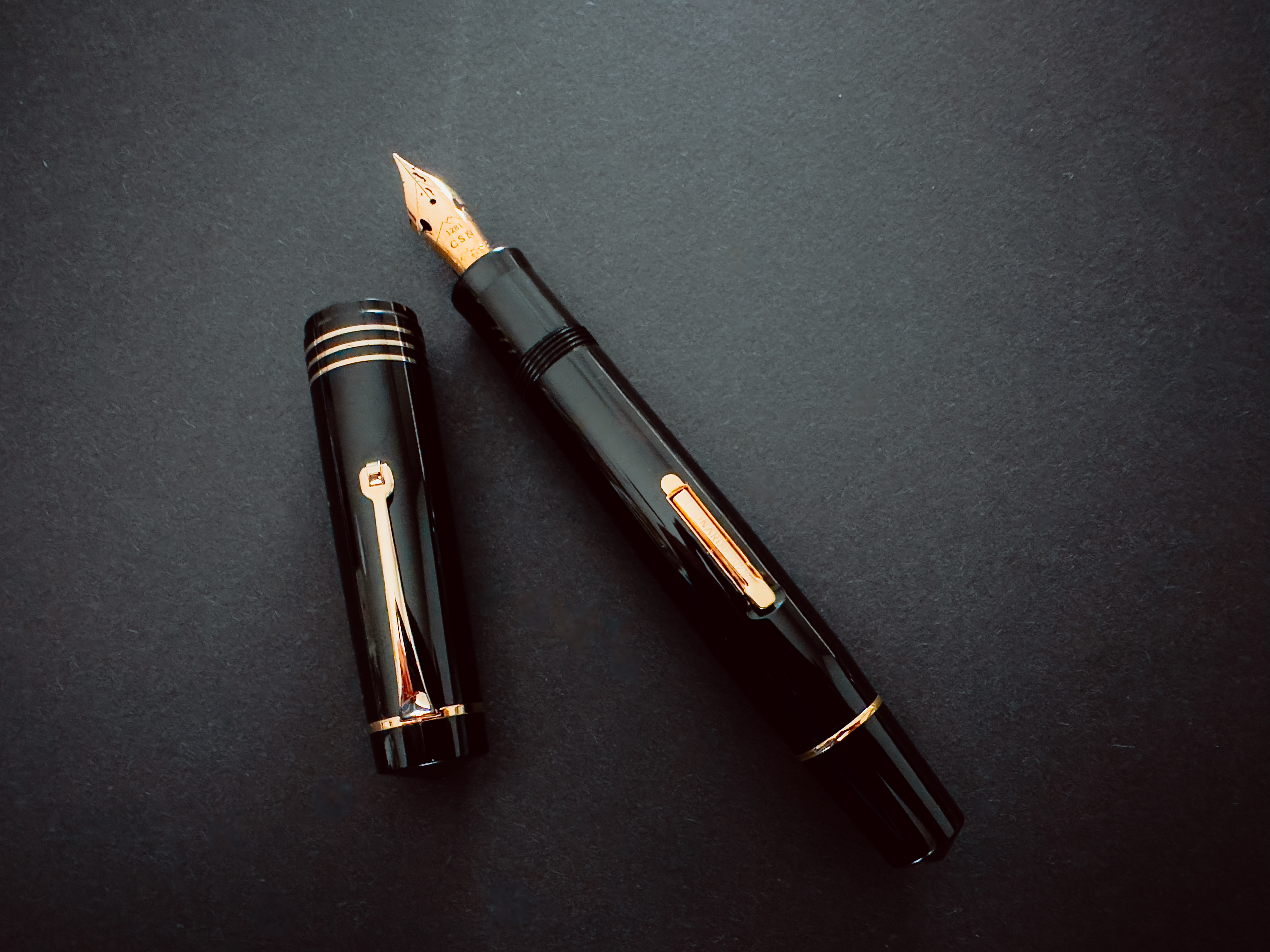 Grazie, ebanite nera con pennino in oro EF elastico per il Circolo Stilografico Napoletano (con una fuglilell' e basilico)