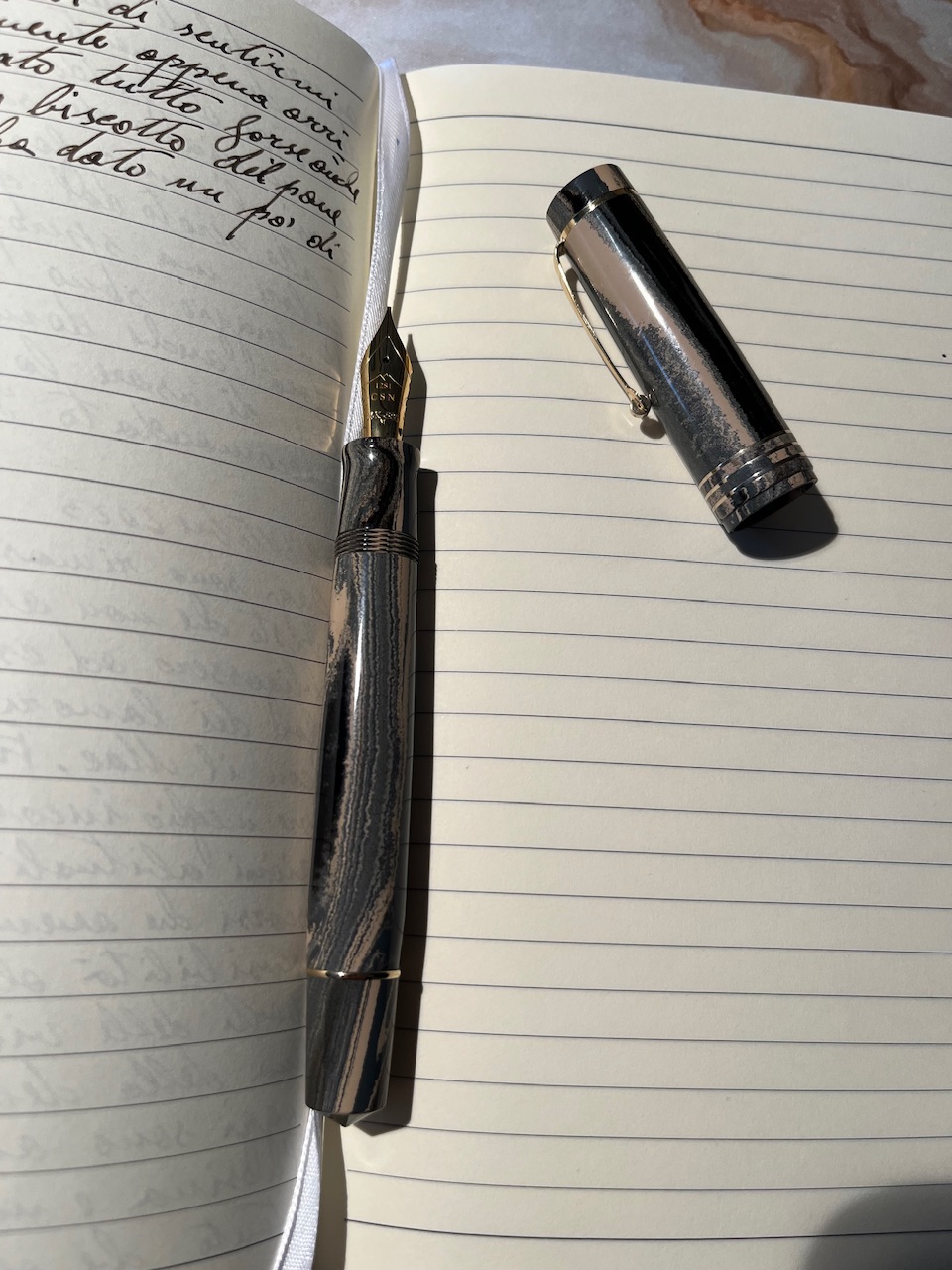Sia questa, che quella che ho inserito io sono penne fatte in esclusiva per gli iscritti al Circolo Stilografico Napoletano, edizione limitata sia come numero che come periodo di acquisto. In vendita ne esistono di simili ma non di uguali, anche il pennino ha un disegno particolare con il profilo del Vesuvio ed il numero 1281 che sono i metri della sua altezza.AntonioBove ha scritto: ↑martedì 23 aprile 2024, 17:44Quindi una edizione limitatissima?