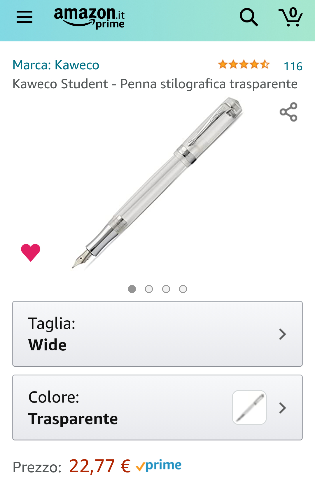 Ora, non so se si possa parlare proprio di una super offerta, anzi so che questa penna staziona intorno a questo prezzo da un po', tuttavia, se anzichè fare incetta di cento penne cinesi su Taobao uno volesse finalmente regalarsi una bella penna, questa qualche soddisfazione la dà. https://www.amazon.it/Pelikan-4001-stil ... ce&sr=1-22