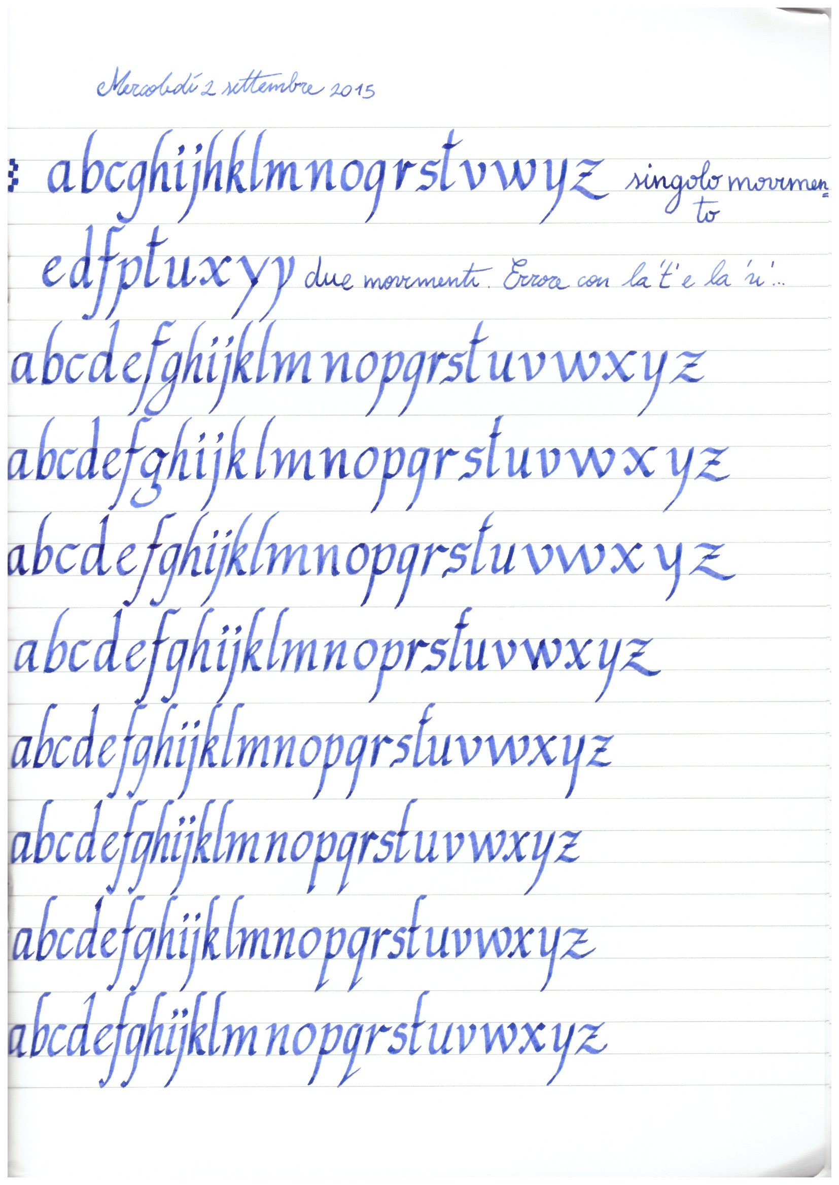 Bravo Ciro, il tuo entusiasmo è accompagnato dalla disciplina e dai giusti riferimenti bibliografici (il lavoro di Alessandro e Daniel con Calligrafia Facile è un supporto fantastico!), perciò sono certa che otterrai in tempi brevi dei risultati eccellenti.