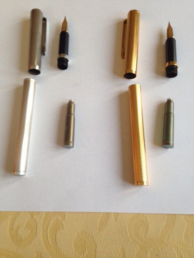 Quindi: non saprei proprio; prova a buttare lì 50 € per la coppia, se te le dà probabilmente fai un affare, dal punto di vista economico (una sola Montblanc Noblesse, un po' simile come linea, sempre cartuccia/converter di quegli anni, ne costa intorno ai 100).