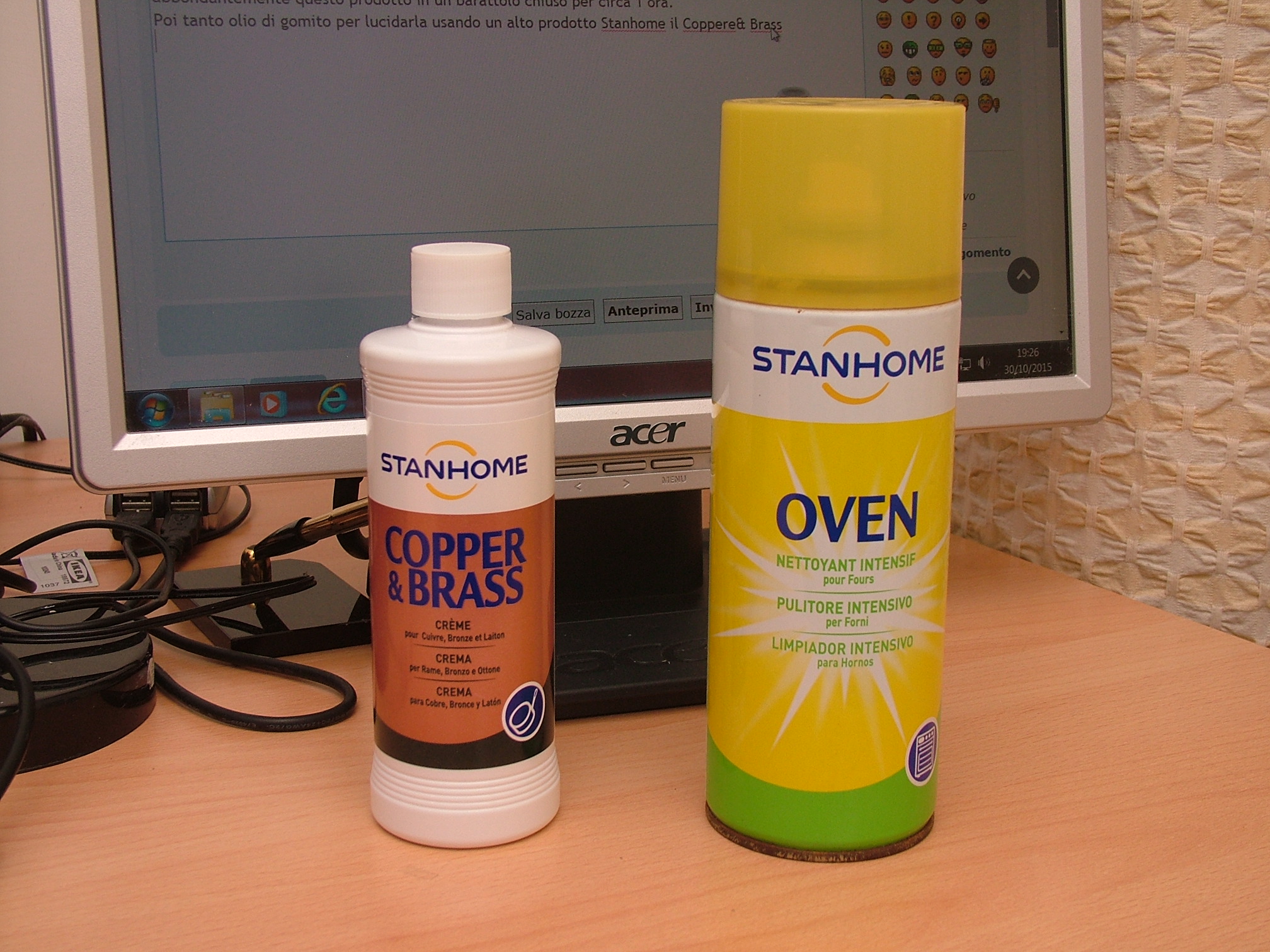 Poi tanto olio di gomito per lucidarla usando un alto prodotto Stanhome il Coppere& Brass