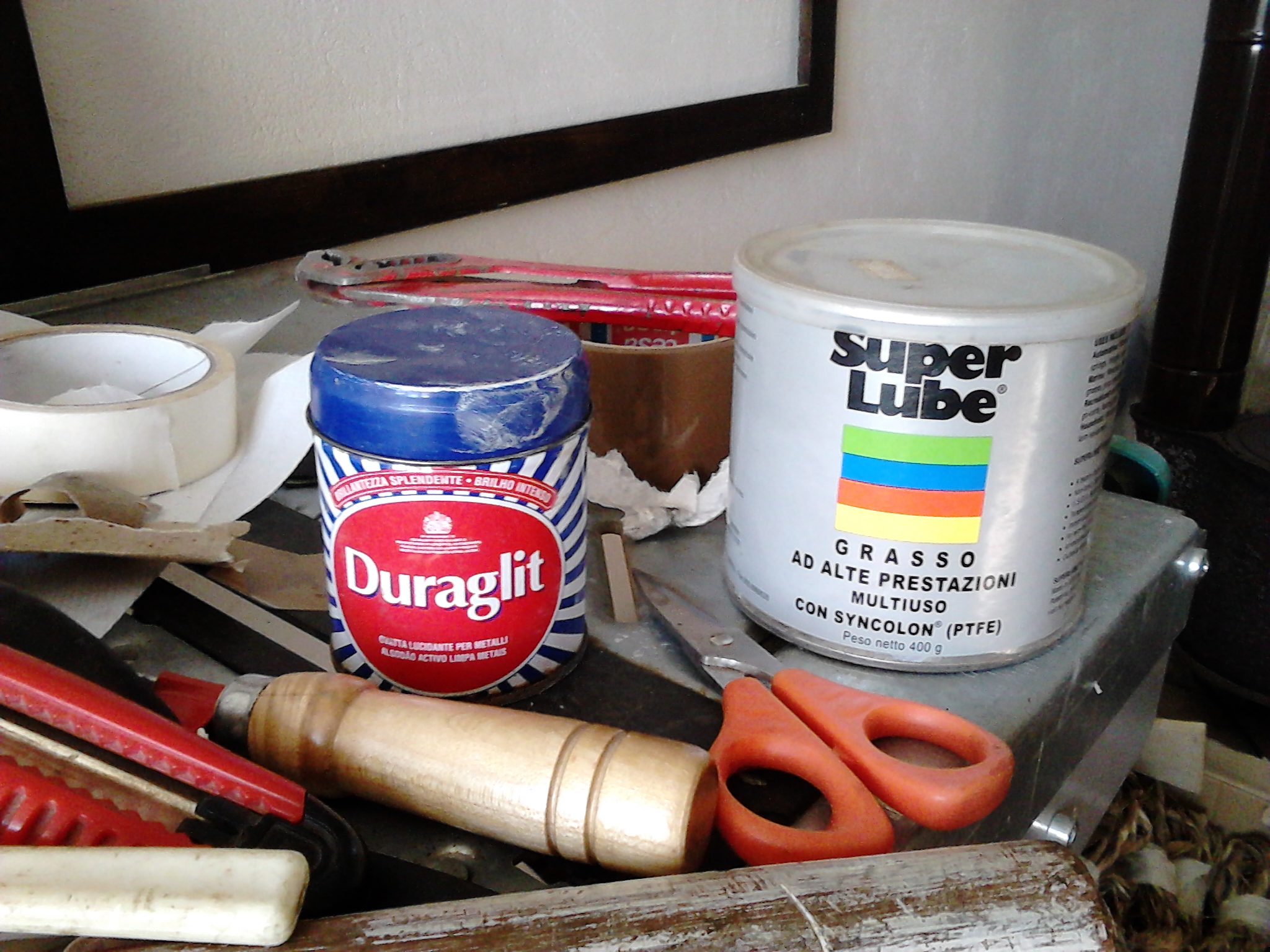 So che qualcuno storcerà il naso vedendo i prodotti che ho usato (gomma, grasso siliconico e Duraglit)