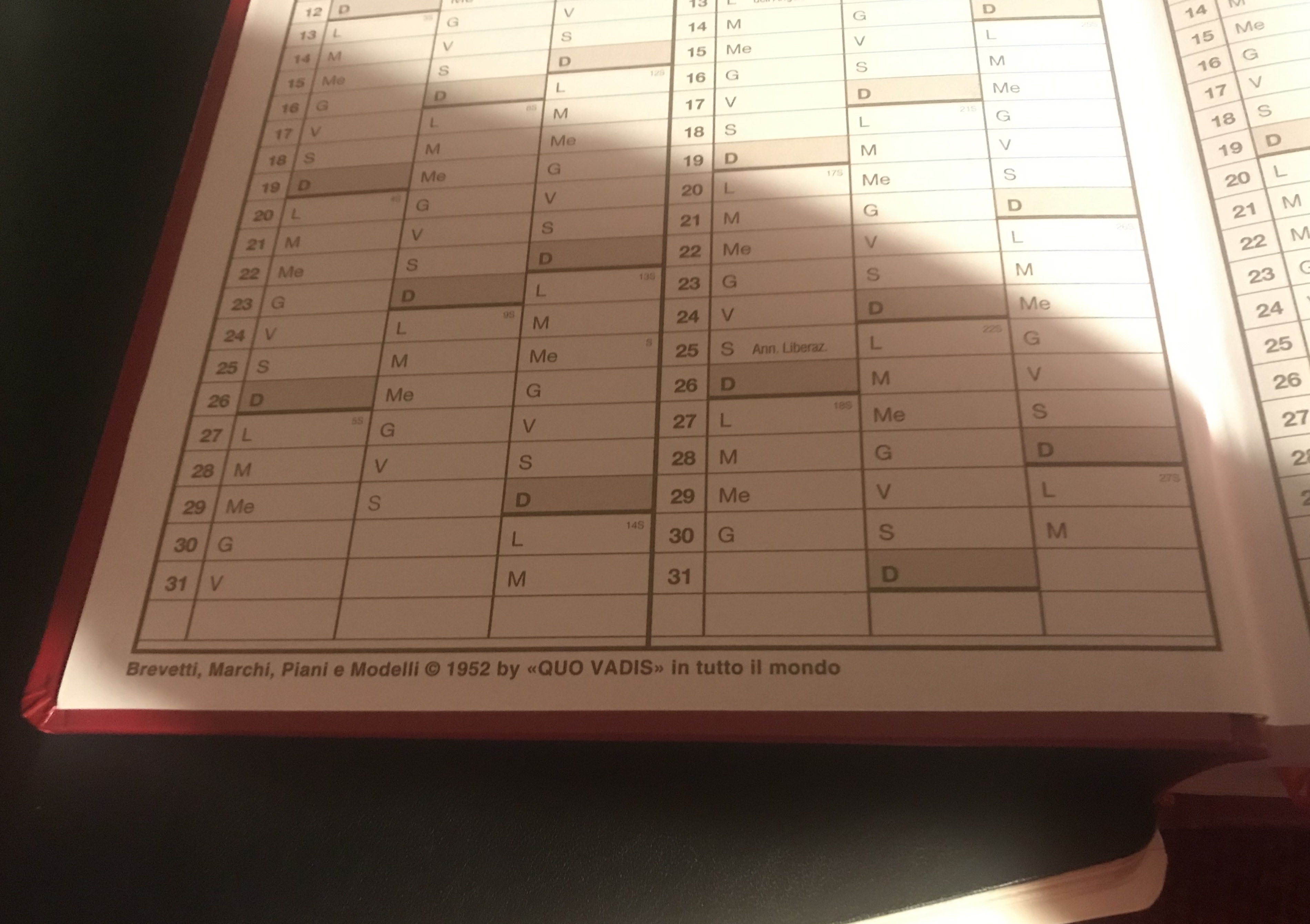 Debbo dire che l'agenda del Momento Legislativo mantiene negli anni una qualità di carta ragguardevole. Non la tradirò mai.