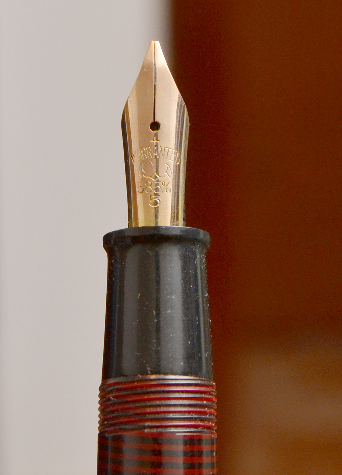 Comunque è semplicissimo verificarlo: se all'interno del corpo in prossimità della sezione c'è la parte più larga, dove il diaframma cessa di fare tenuta e depressione (si vede anche controluce, senza smontare la penna), allora la penna è nata a siringa inversa.