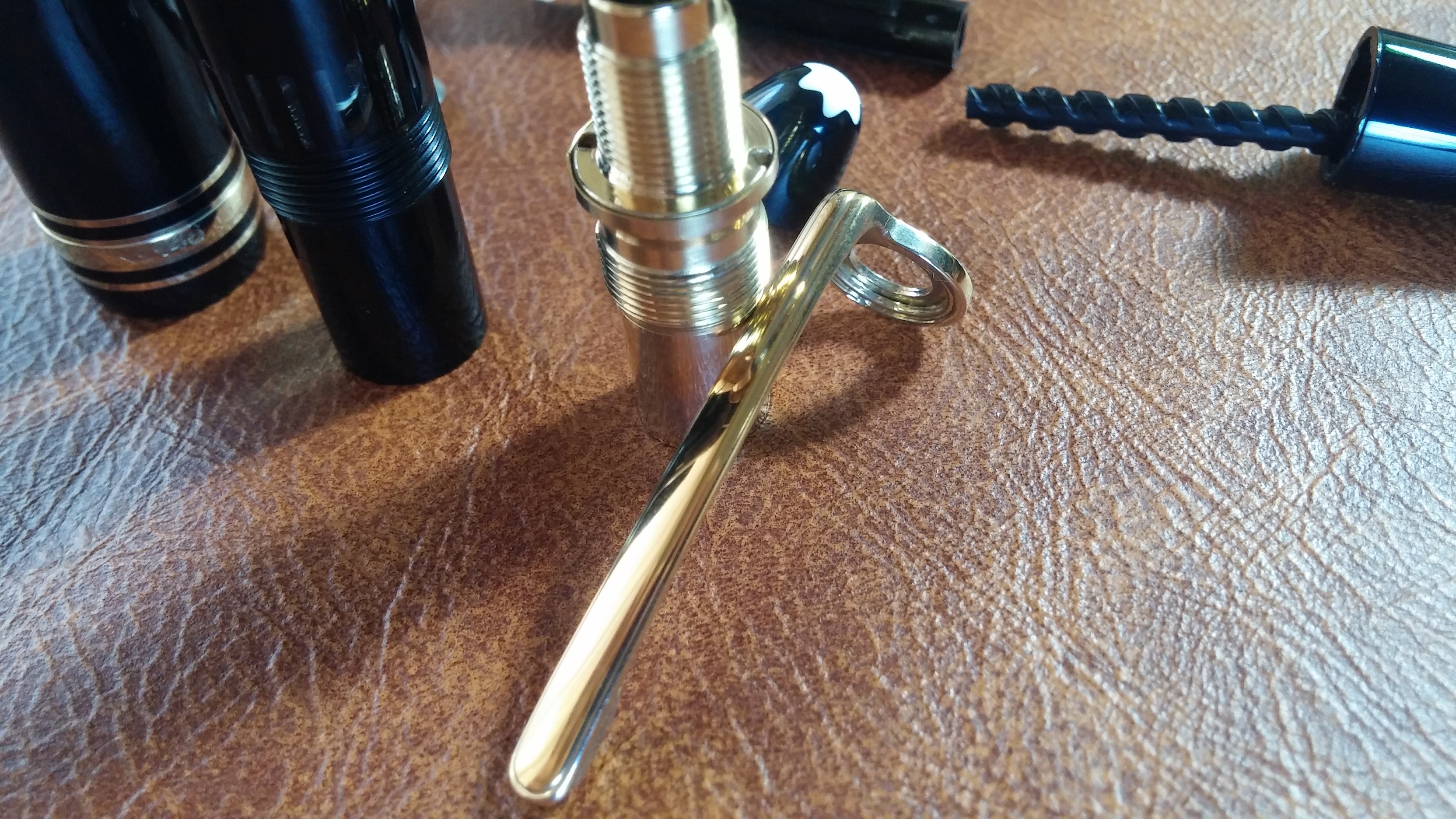 Qui un insieme di tutti i pezzi prima di essere rimontati Dopo aver lubrificato con del grasso siliconico il pistone ho provveduto a rimontare la penna e... voilà il risultato finale Sono molto soddisfatto del risultato, certo la penna non è perfetta ma a me occorreva una penna per tutti i giorni da portare sempre con me e da utilizzare per scrivere sull'agenda o prendere degli appunti al volo.