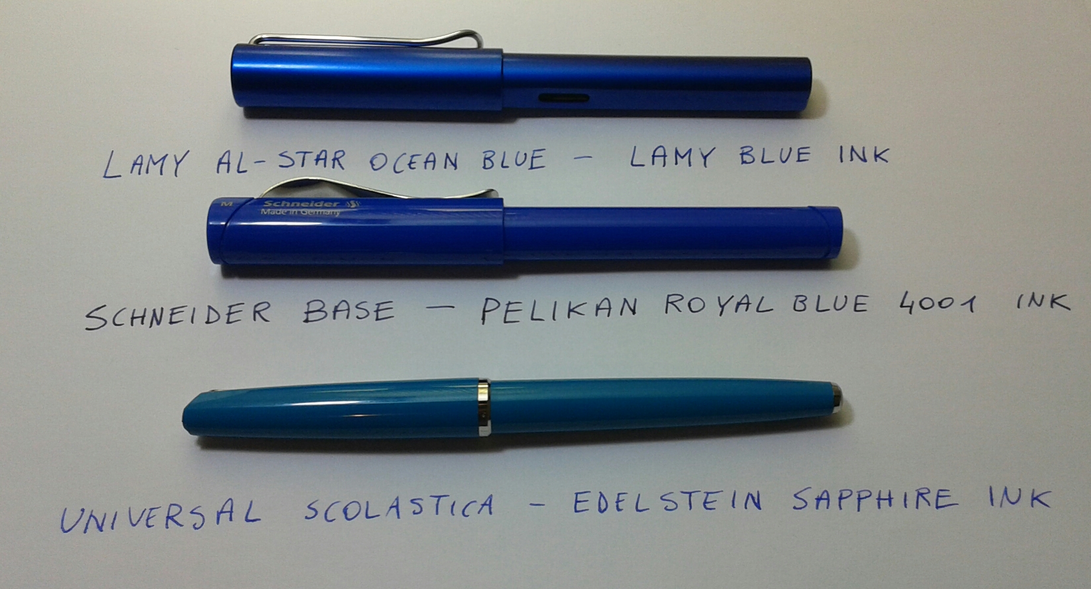 Intendiamoci, solo azzurre, al massimo un turchese un pò più scuro, un blu molto molto chiaro, tipo Lamy Ocean Blue, però sarebbe meglio non quelle blu scuro.