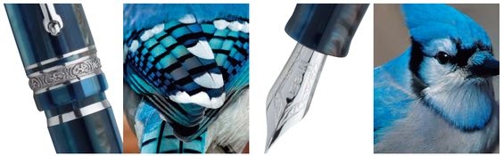 Il problema della Blue Jay è la difficile, se non impossibile, reperibilità. Stringatamente: costruita da Delta per la Casa della stilografica di Firenze (vedi sito) in due versioni cartuccia/converter e stantuffo; quest'ultima è assimilabile a numerosi modelli medium size della casa a stantuffo vedi, per esempio la nota Dolcevita stantuffo. La resina azzurra variegata tornita dal pieno richiama il colore del blue jay un uccellino americano, da cui il nome. Per il mercato straniero Delta ha costruito un modello molto simile alla Nostra, di cui mi sfugge il nome. Per il mercato estero (credo americano) dovrebbe circolare una 'Turchese Meraviglia stantuffo' molto simile alla bluejay in finiture oro e platino - saluti