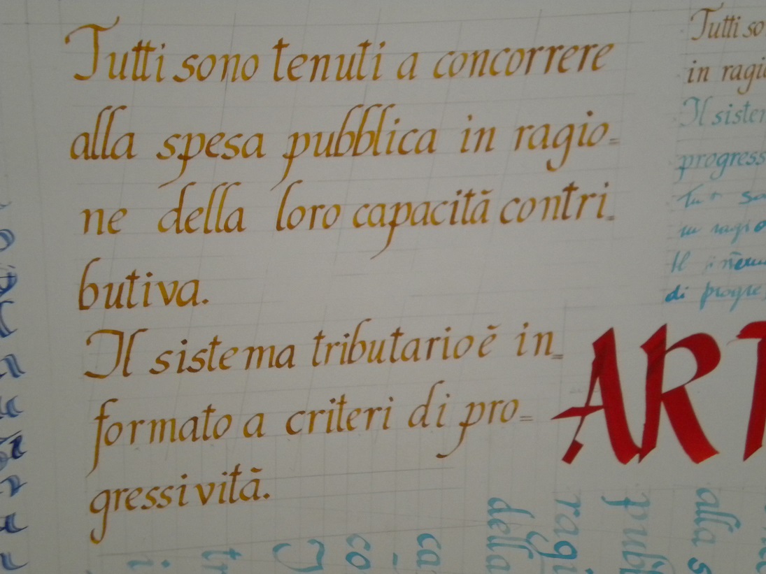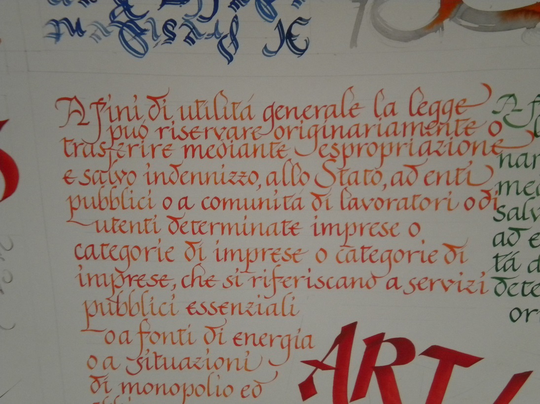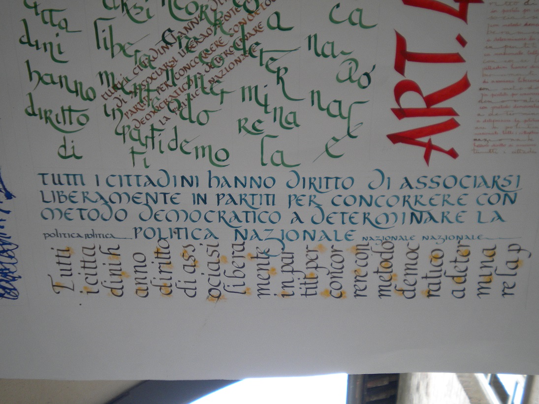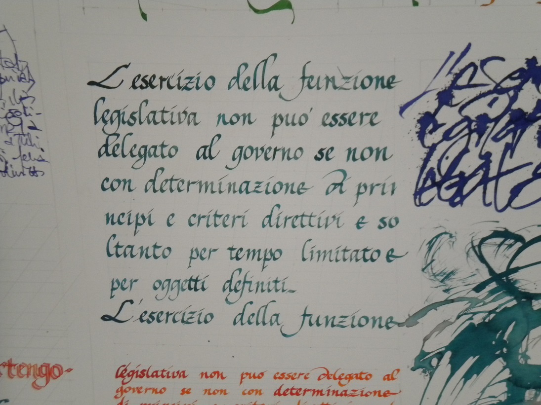 Quello che ho visto di calligrafico è stato presentato dall'Associazione "Dal segno alla scrittura" di Torino (devo dire che questa "riscoperta" della nostra Costituzione, di 'sti tempi, è qualcosa che allarga il cuore, sperando che non sia troppo tardi...).