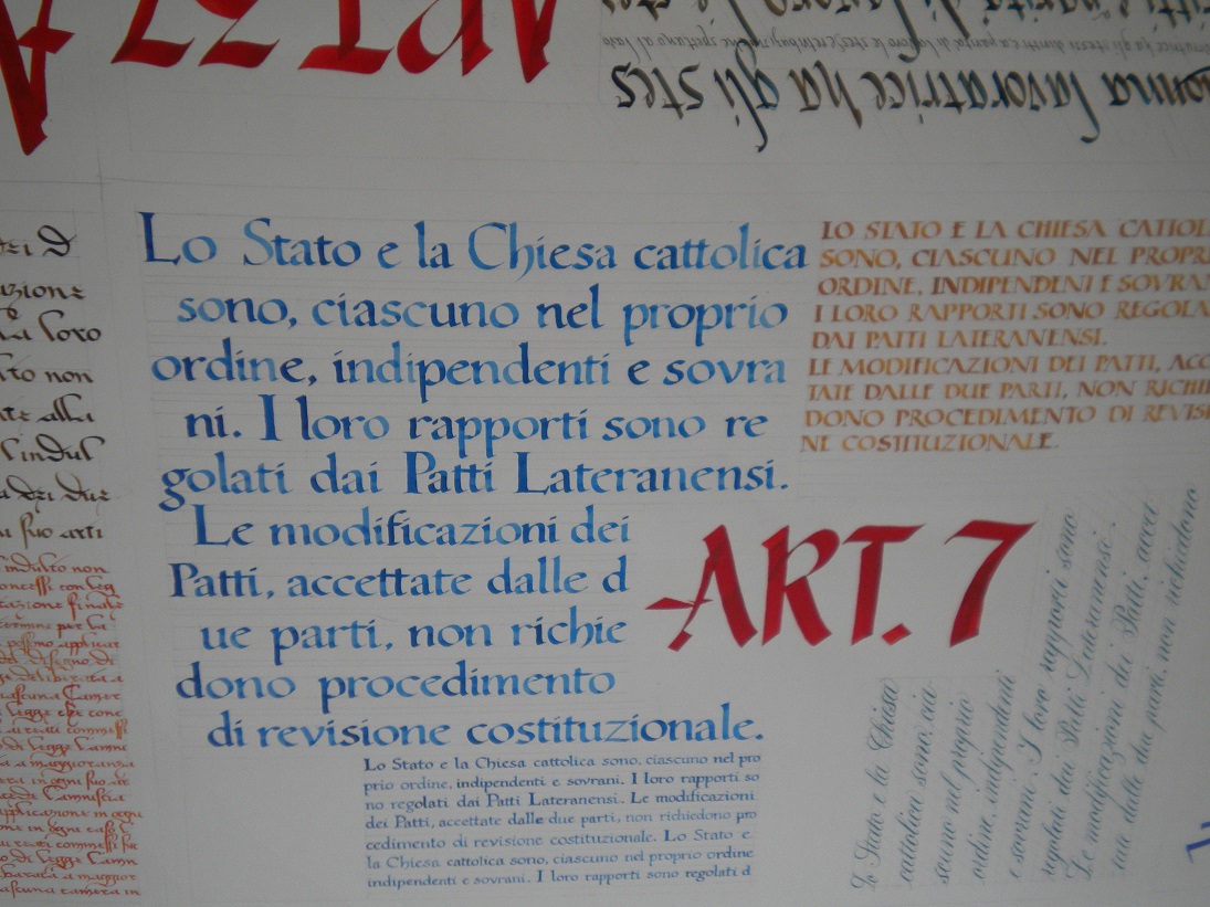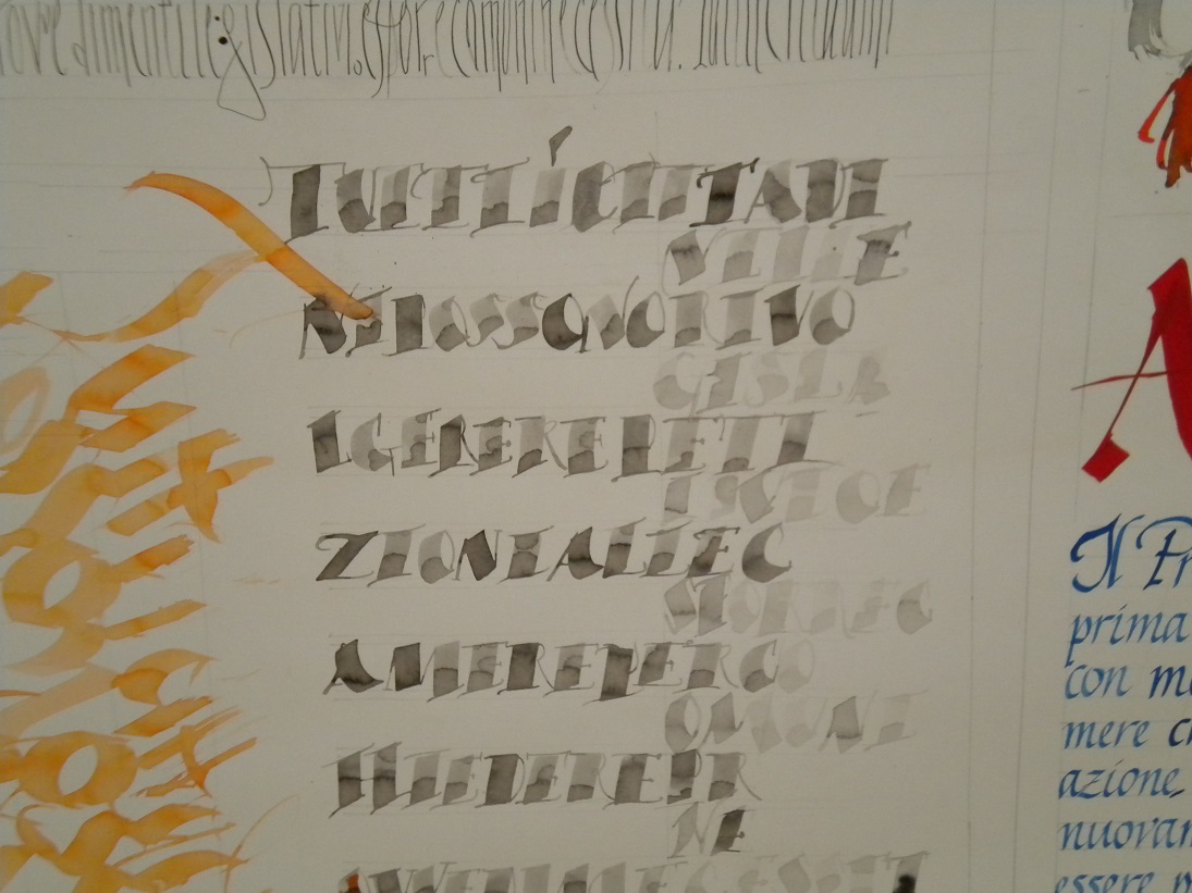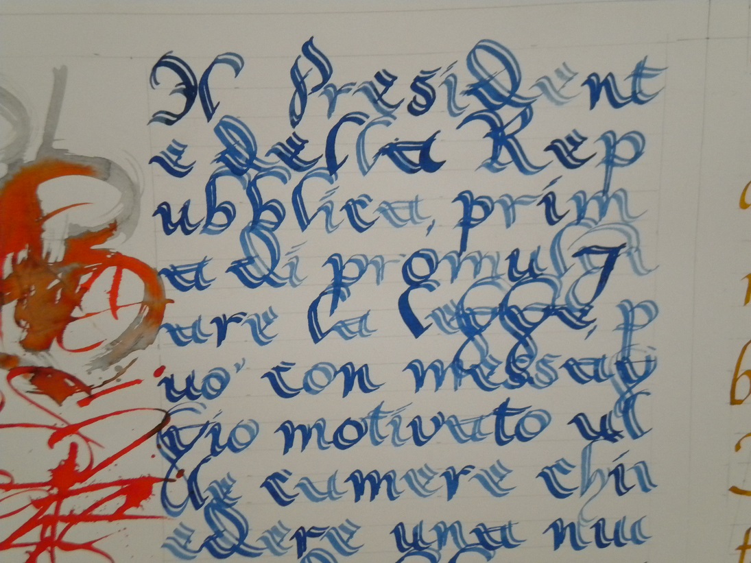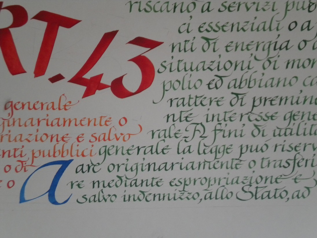 Quello che ho visto di calligrafico è stato presentato dall'Associazione "Dal segno alla scrittura" di Torino (devo dire che questa "riscoperta" della nostra Costituzione, di 'sti tempi, è qualcosa che allarga il cuore, sperando che non sia troppo tardi...).
