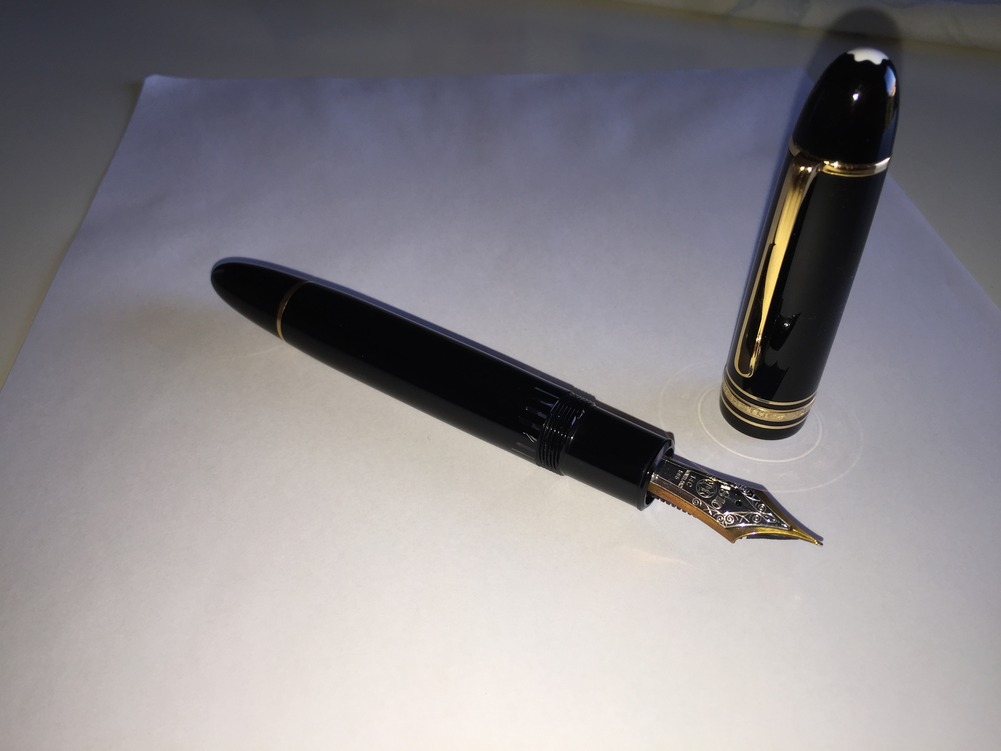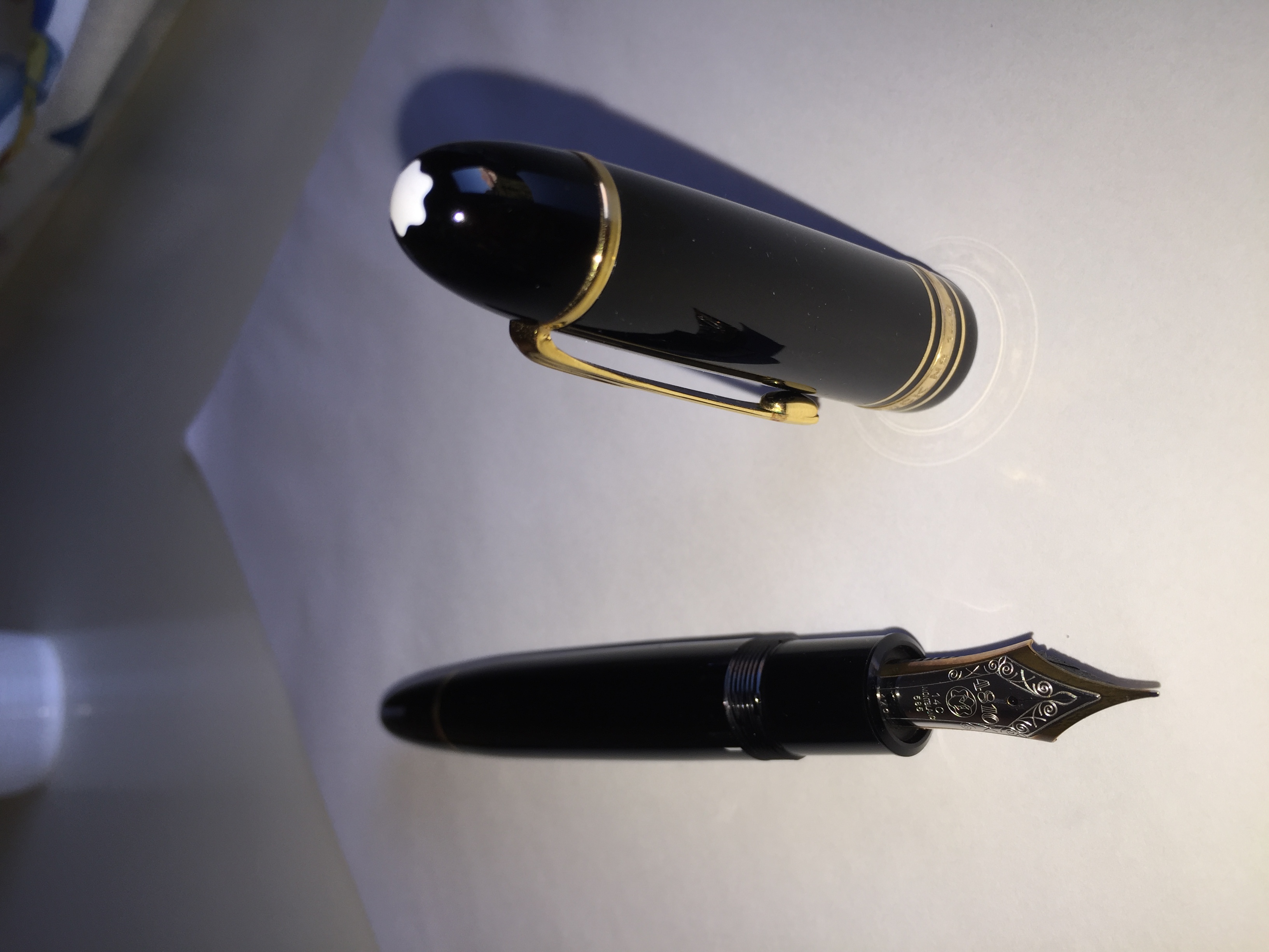 Ieri sera spulcio un noto sito di annunci e trovo una bellissima MB 149, degli anni 70, a un prezzo che mi pare onesto. Decido di contattare l'inserzionista che si rivela un collega medico a cui, per la laurea, hanno regalato non una ma ben due MB149. Una sola di queste viene utilizzata regolarmente, il modello con il cappuccio con inciso il nome del collega. La povera sorellina, invece, dorme per tanto tempo in un cassetto senza mai essere inchiostrata (a parziale conferma, ai primi lavaggi neanche lontanamente segno di inchiostro).