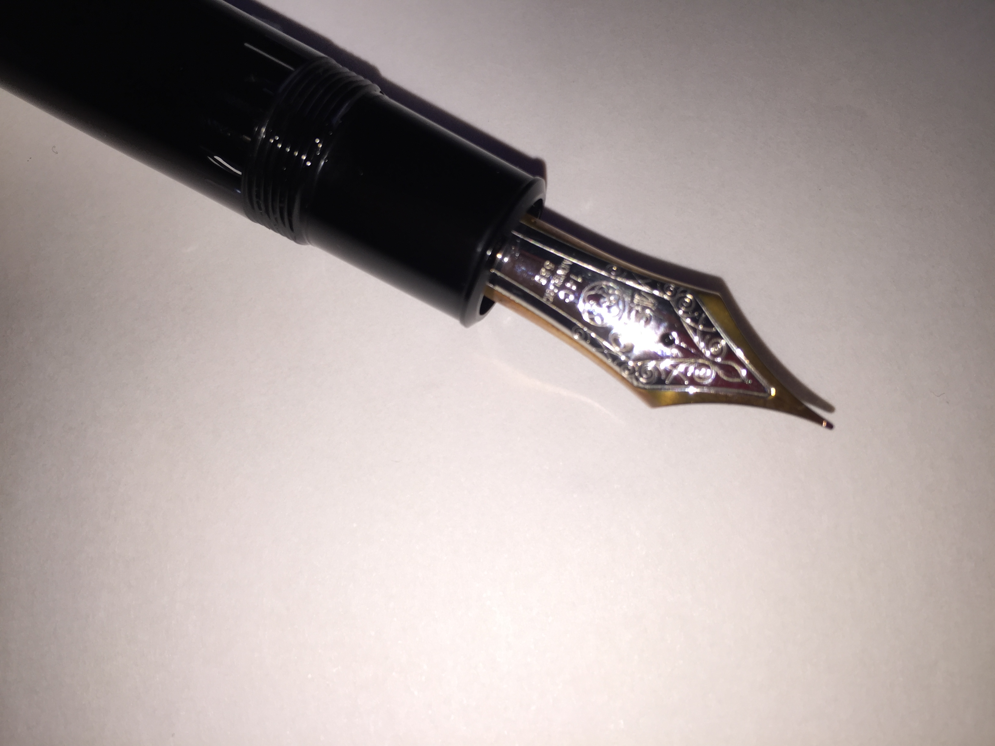 Fu così che me la ritrovai tra le mani in un tardo pomeriggio sassarese. Teoricamente dovrei risparmiare per le vacanze, non avrei necessità di una penna e avrei anche altro lavoro da fare. Ma un caffè e due chiacchiere e mi ritrovo ammaliato; ed ecco che la bella 149, dotata di pennino bicolore 14C taglia F, entra nella mia dotazione